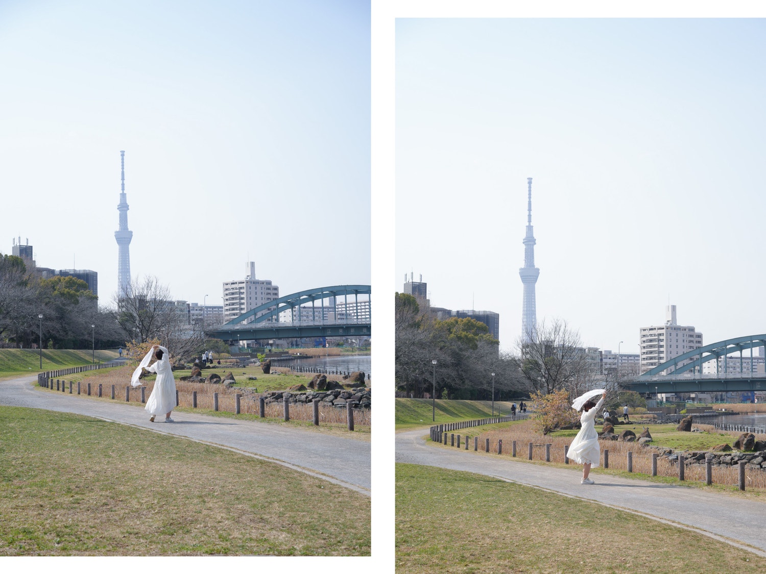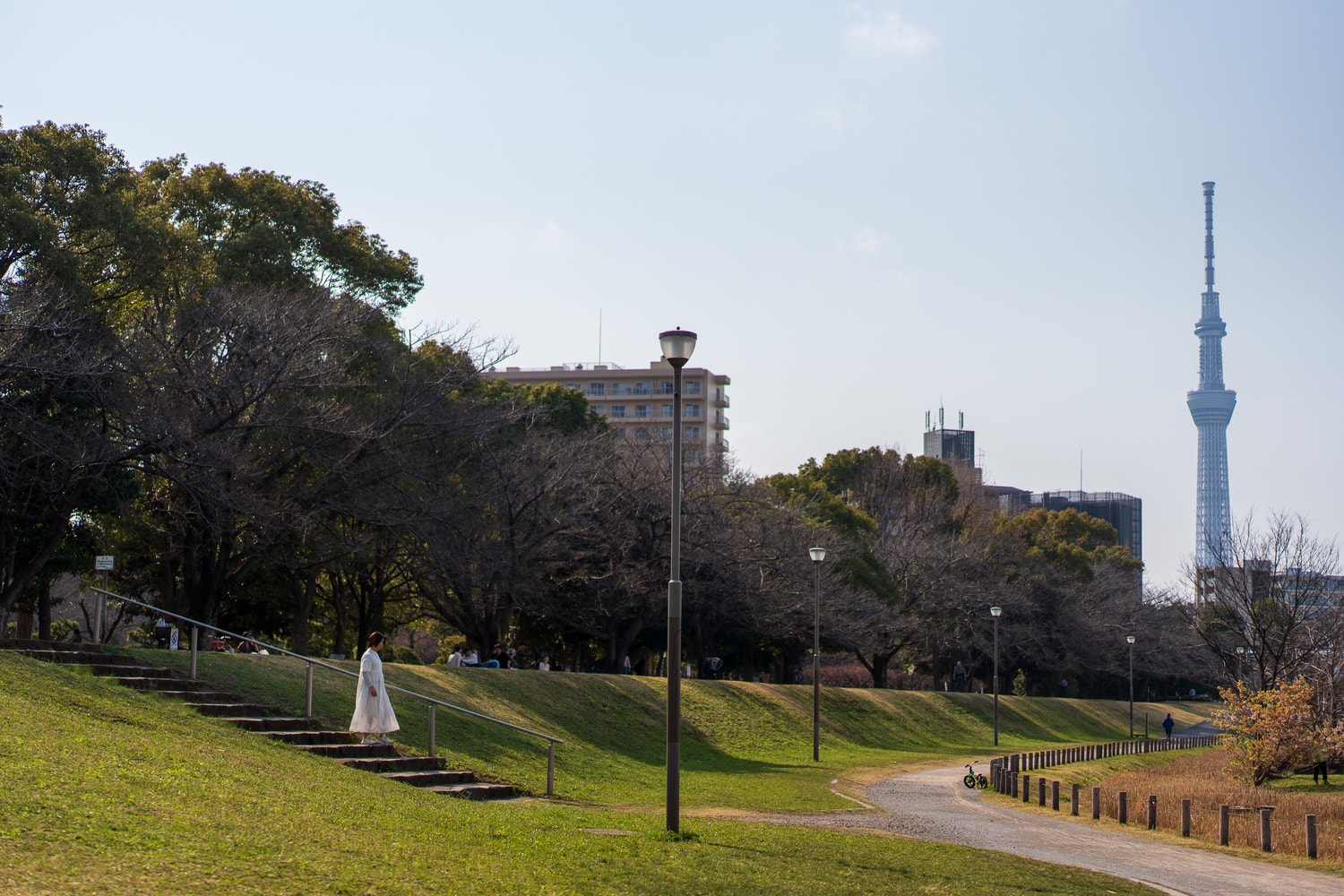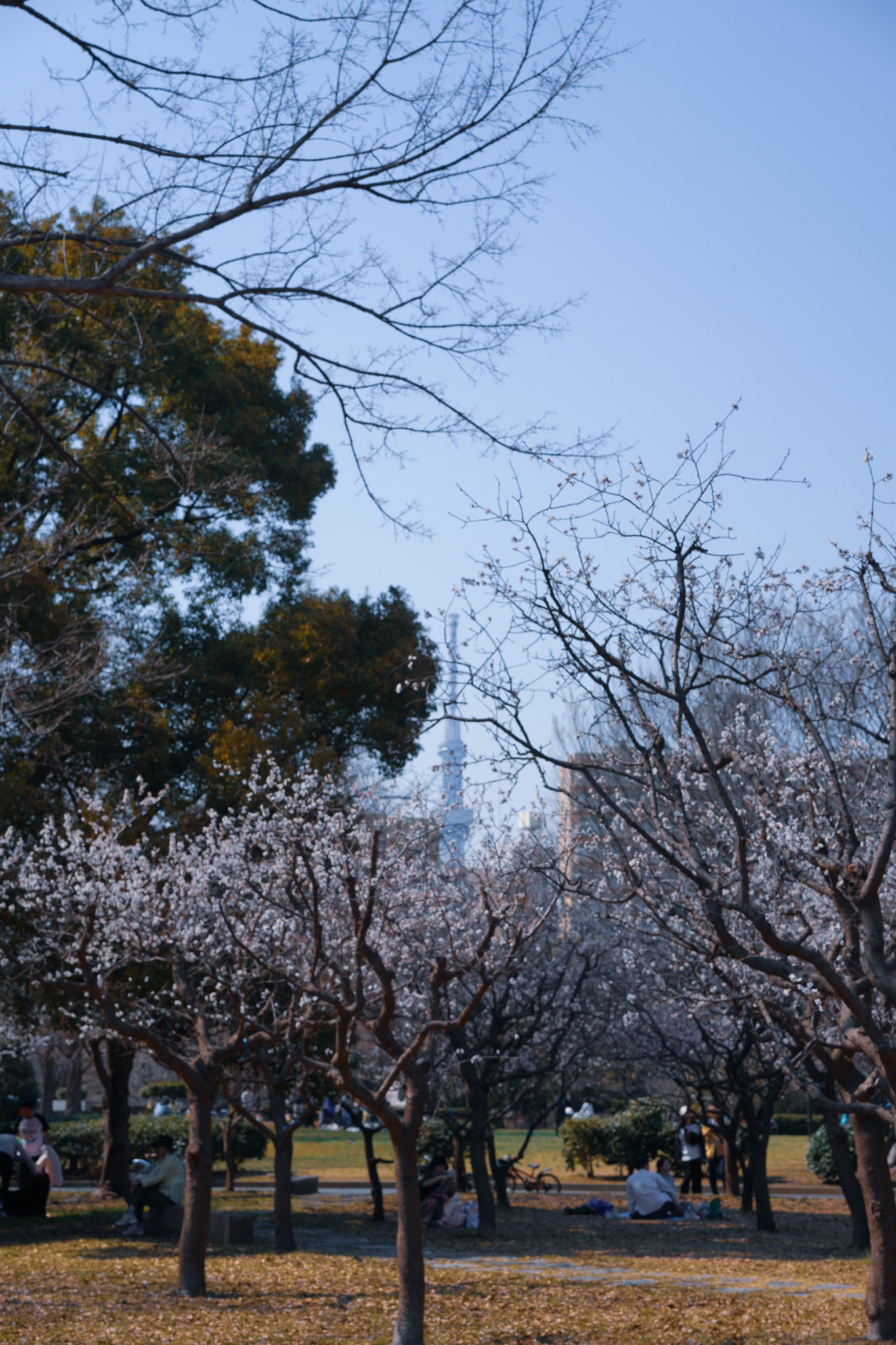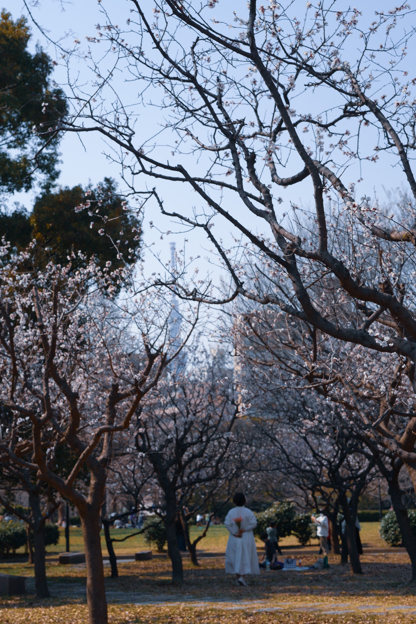 ちょうど杏の花が咲いていて、遠くにはスカイツリー!ここで練習するのもいいんじゃない?