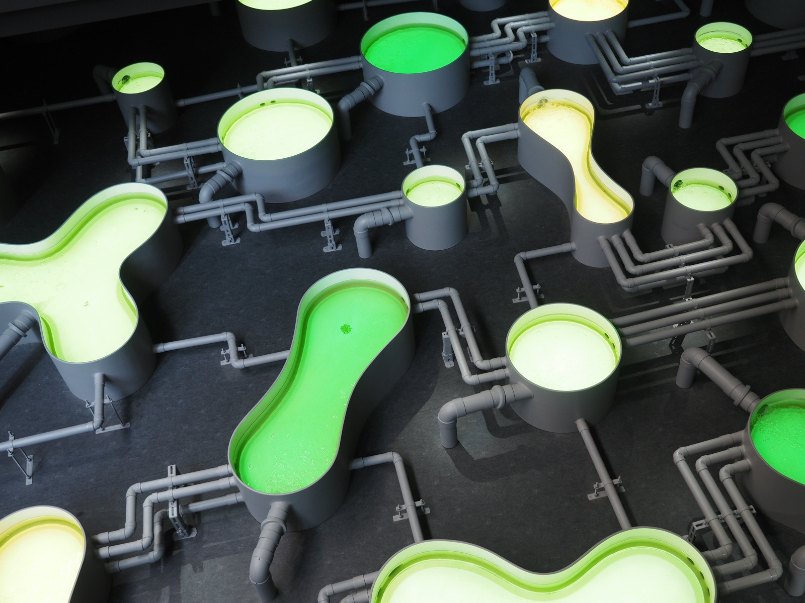 資源の循環、藻類の可能性、日本のものづくり、といったテーマがわりと抽象的に展示されています。