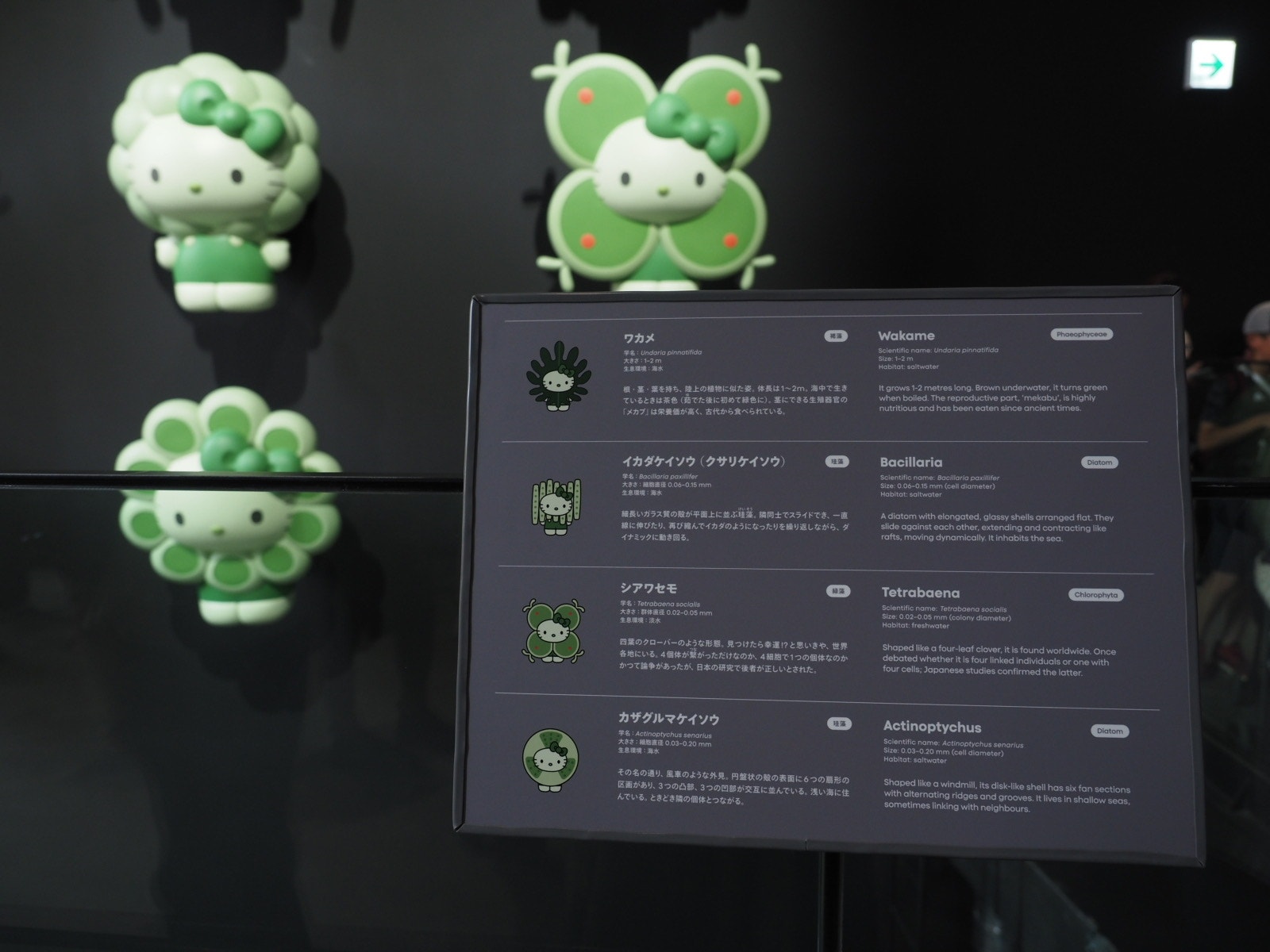 出口にある土産物店には藻類キティちゃんのピンバッチなんかもあって、さっそくみんなの財布の紐が緩んでました💸