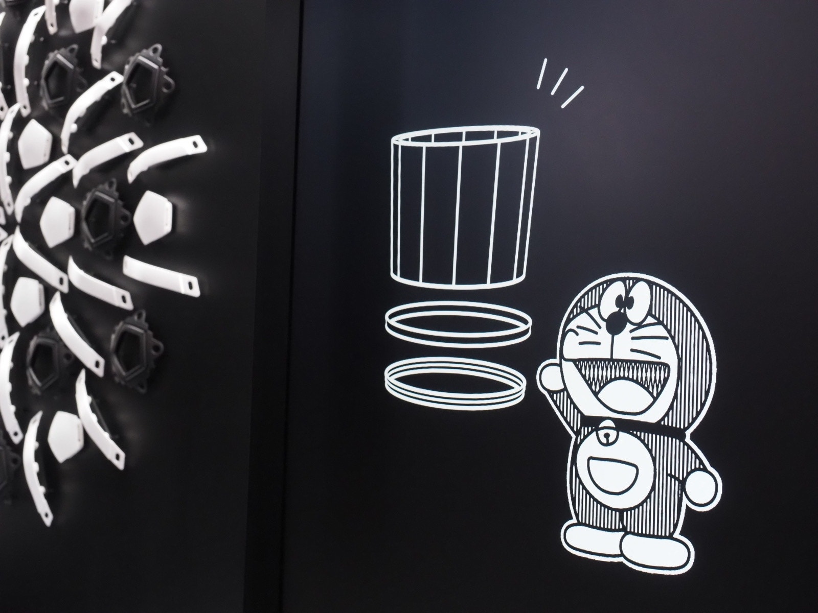 藻類に扮したキティちゃんやものづくりを説明してくれるドラえもんがかわいい。