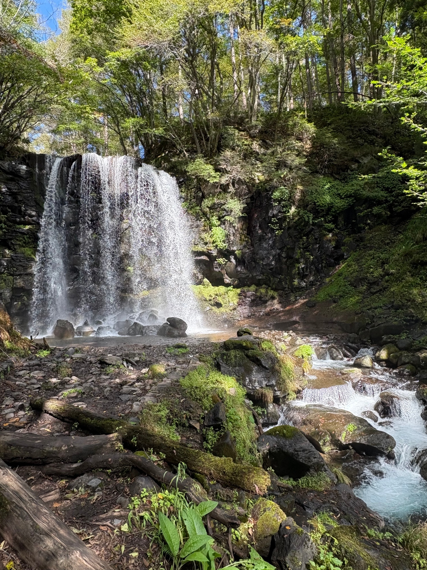 道路から少し奥に入ると綺麗な水の流れる滝があり、三脚を使って撮影しました。
