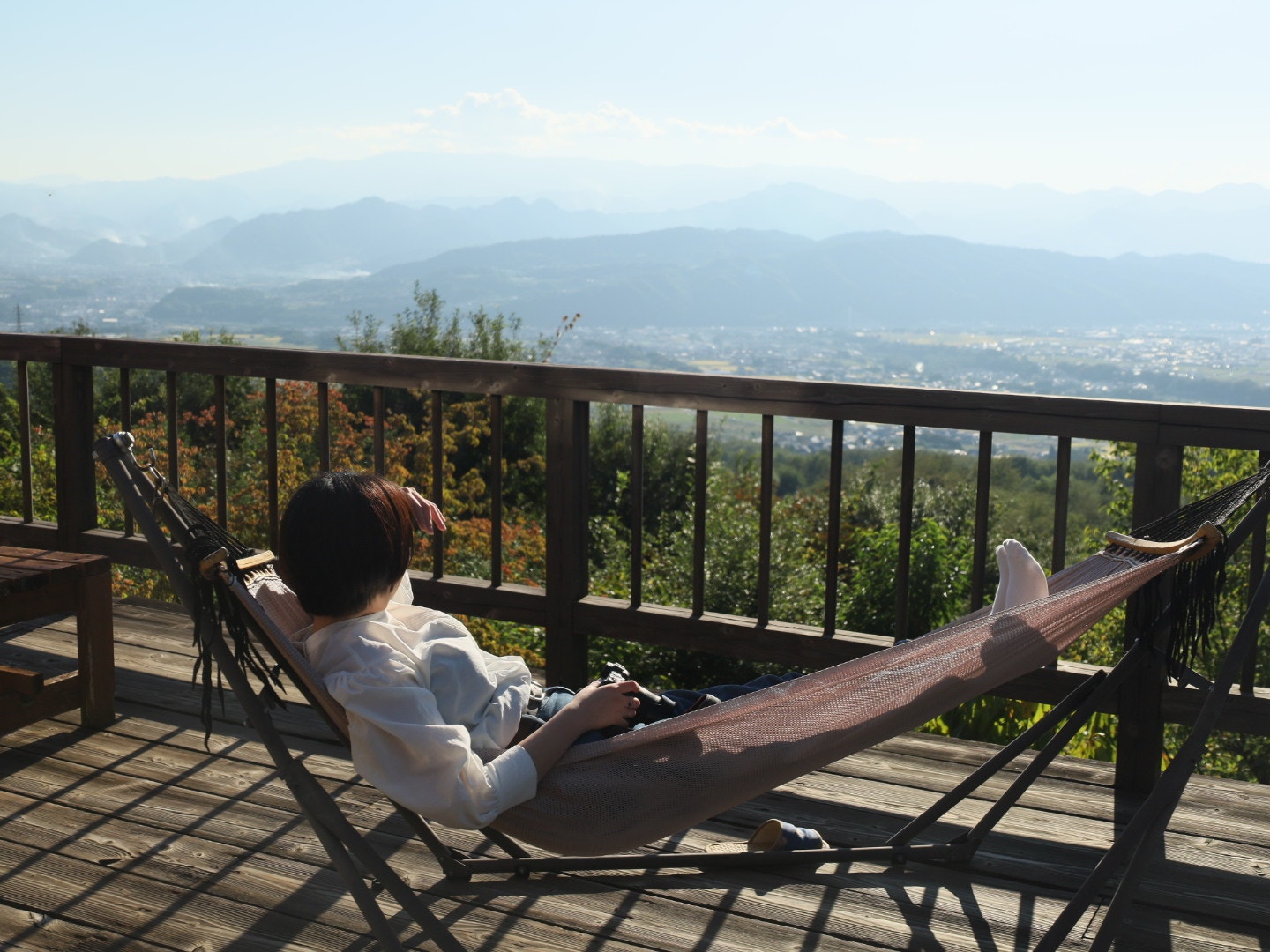 次に行ったギャラリー併設のカフェには広いテラスがあり、ハンモックやブランコもあるので景色を眺めながら自由に過ごすことができます。