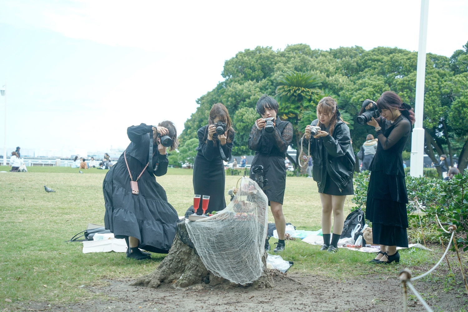 なので風裏になりそうな、大きな木の根元に移動しました。被写体以外に写り込んじゃう人や建物が制限できたので、移動して良かったかも。