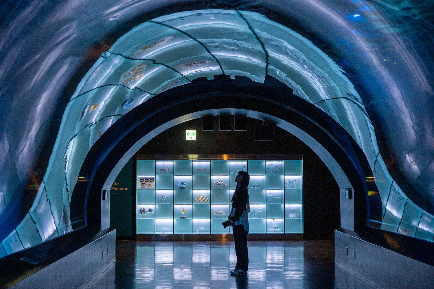 トンネルになった水槽は、閉園間際に人が少ないころを見計らって撮影タイム。