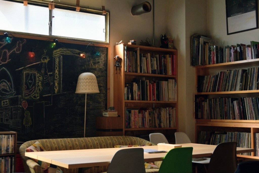 店長さんが趣味で集めた沢山の映画のパンフレットや、小説、雑誌、資料は自由に閲覧可能で、一人一冊までテーブルに持ち出しオッケー♪