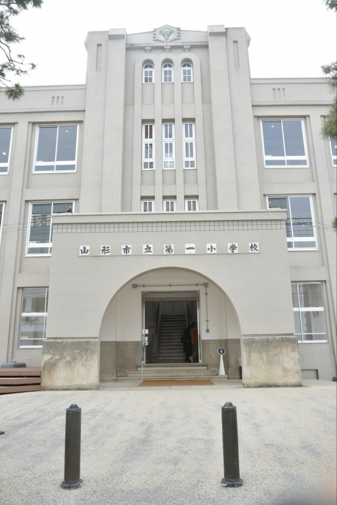 山形県初の鉄筋コンクリート造建物として建設された山形市立第一小学校をリノベーションした施設。