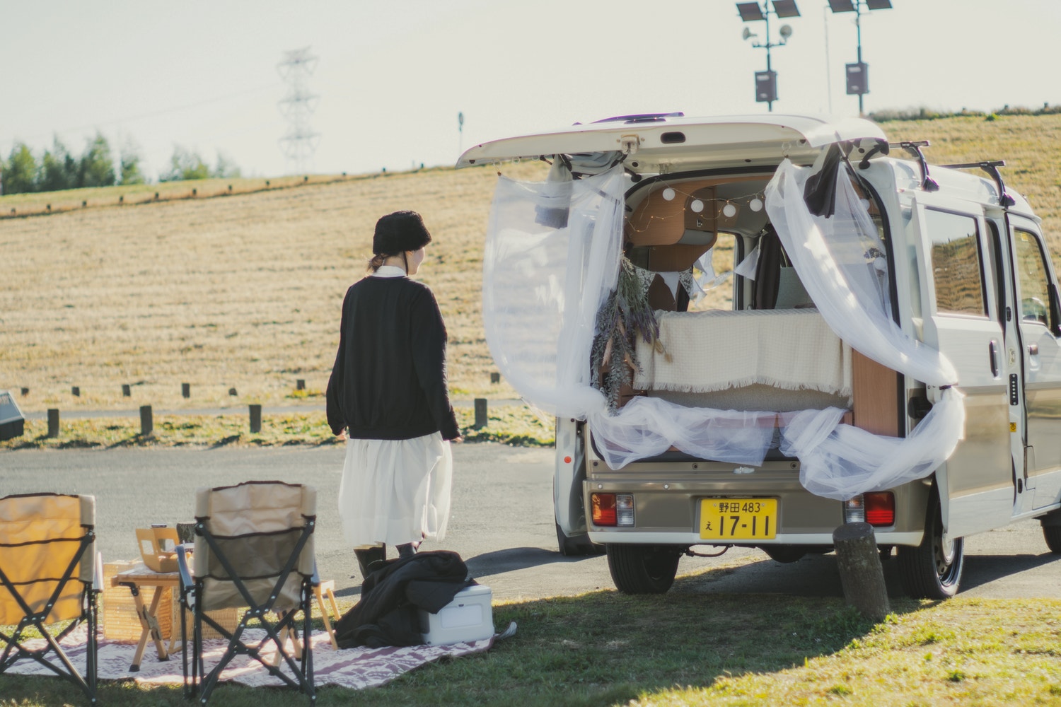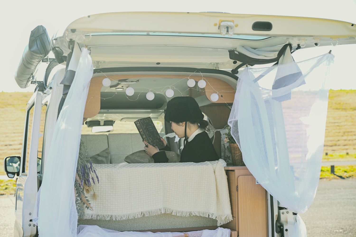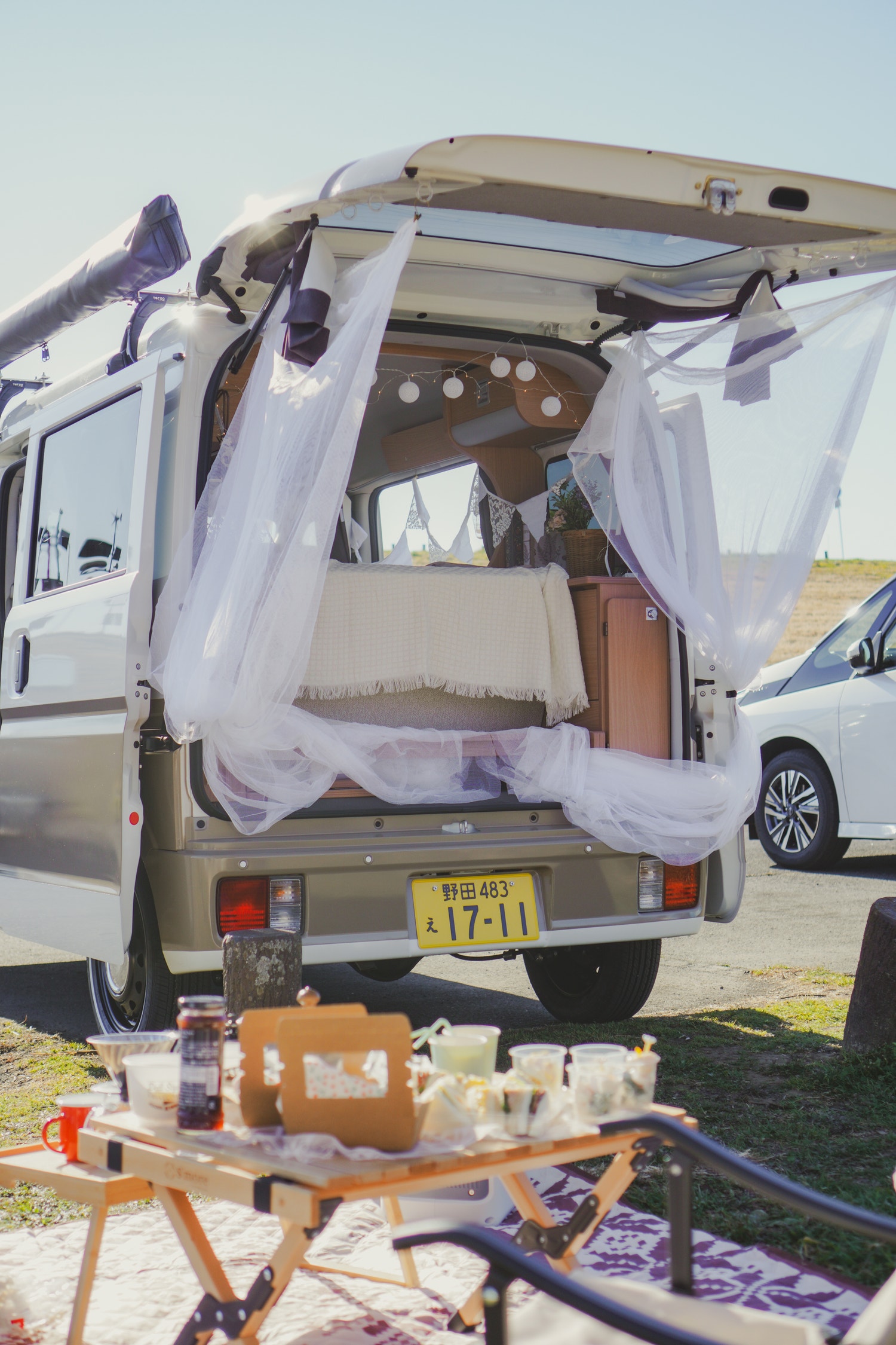 雨が降っても車内をソファ仕様にできるので、小雨が心配なお天気でも決行できちゃいますよー☺️