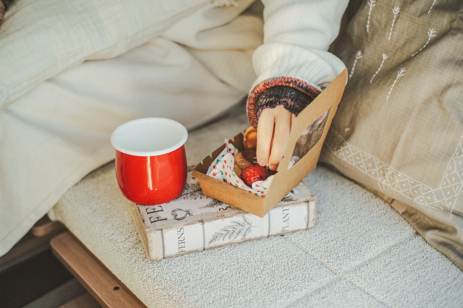 撮影しているうちにサンドイッチがカピカピになり、冷えた体にジュースやフルーツ杏仁は辛く、太陽光でチョコレートが溶けかけたのは、ここだけの話です🤫
