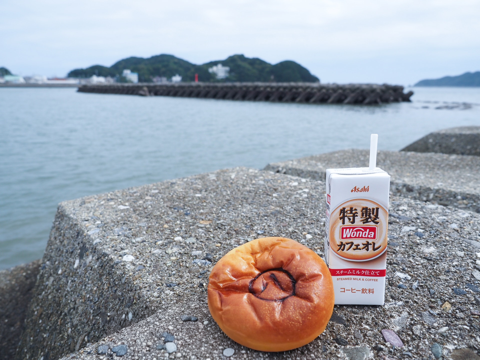 島旅らしく海辺でパンを食べました。