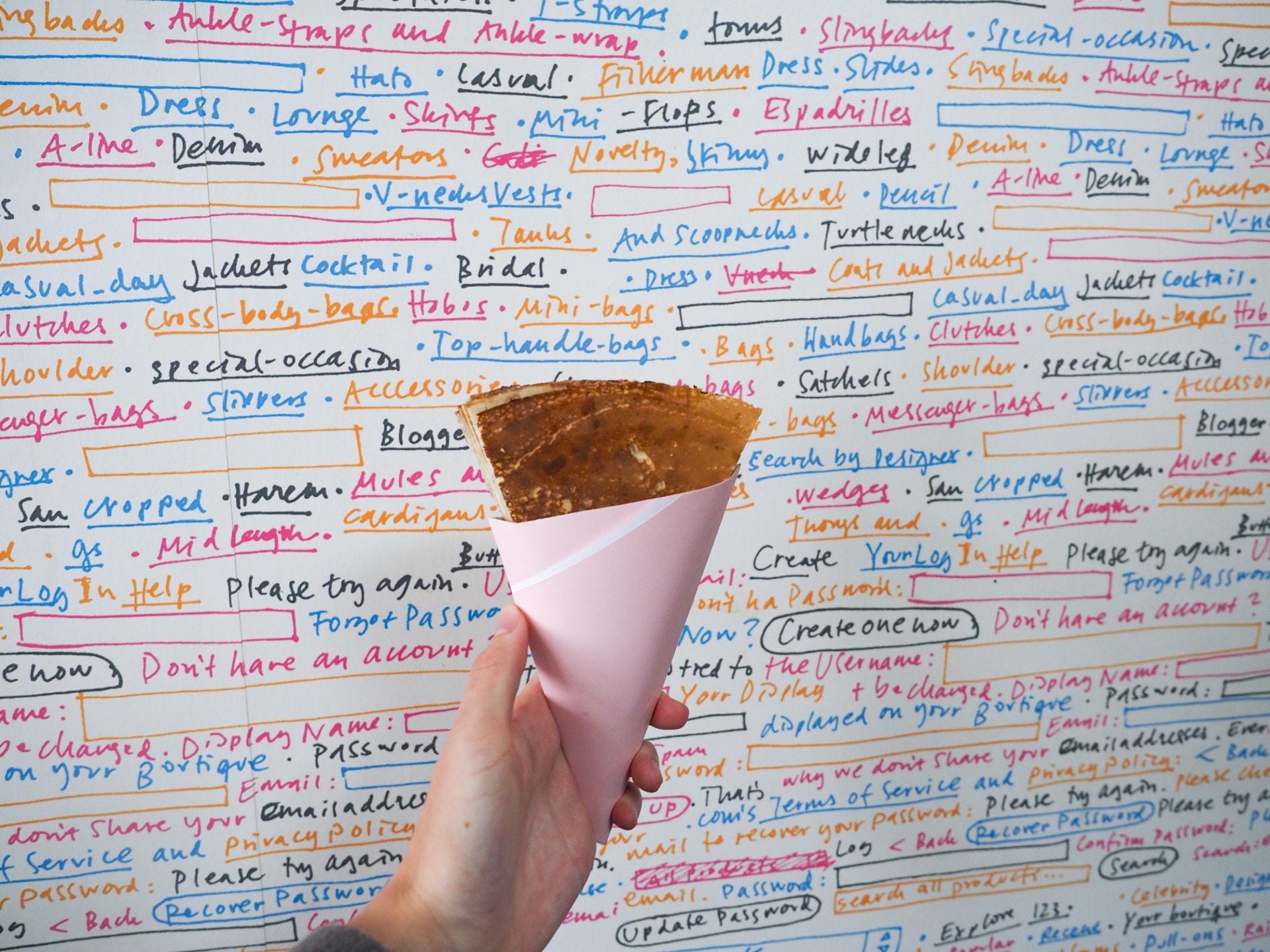 注文した冷やしバターシュガーは、バリっとした厚めの生地にバターと砂糖を挟んだ、新食感のクレープ。