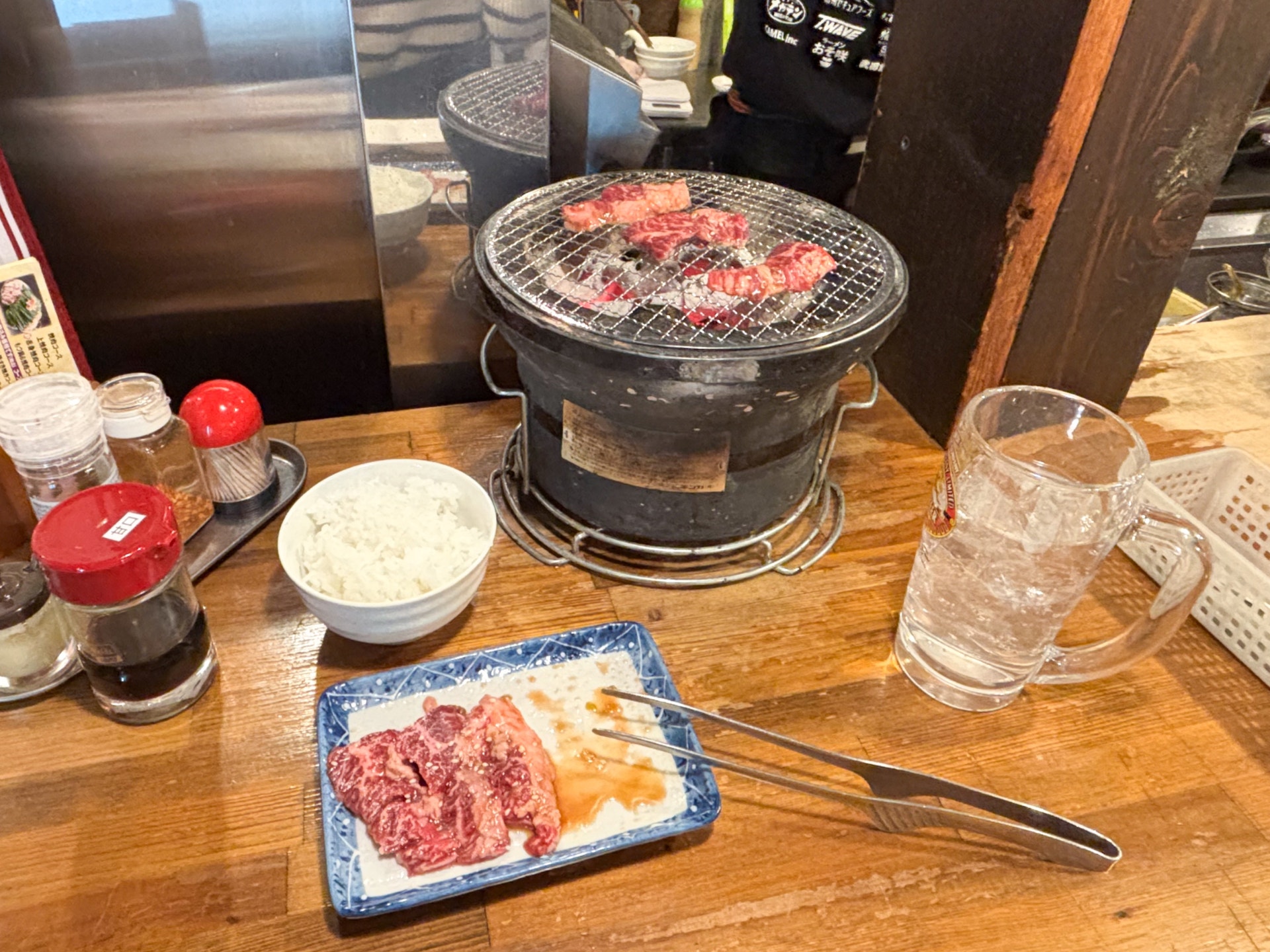 スーパーの一角にお肉を焼ける場所があったり、カウンターでひとり焼肉できるお店があったりと、誰もが焼肉を楽しめる街なのです。