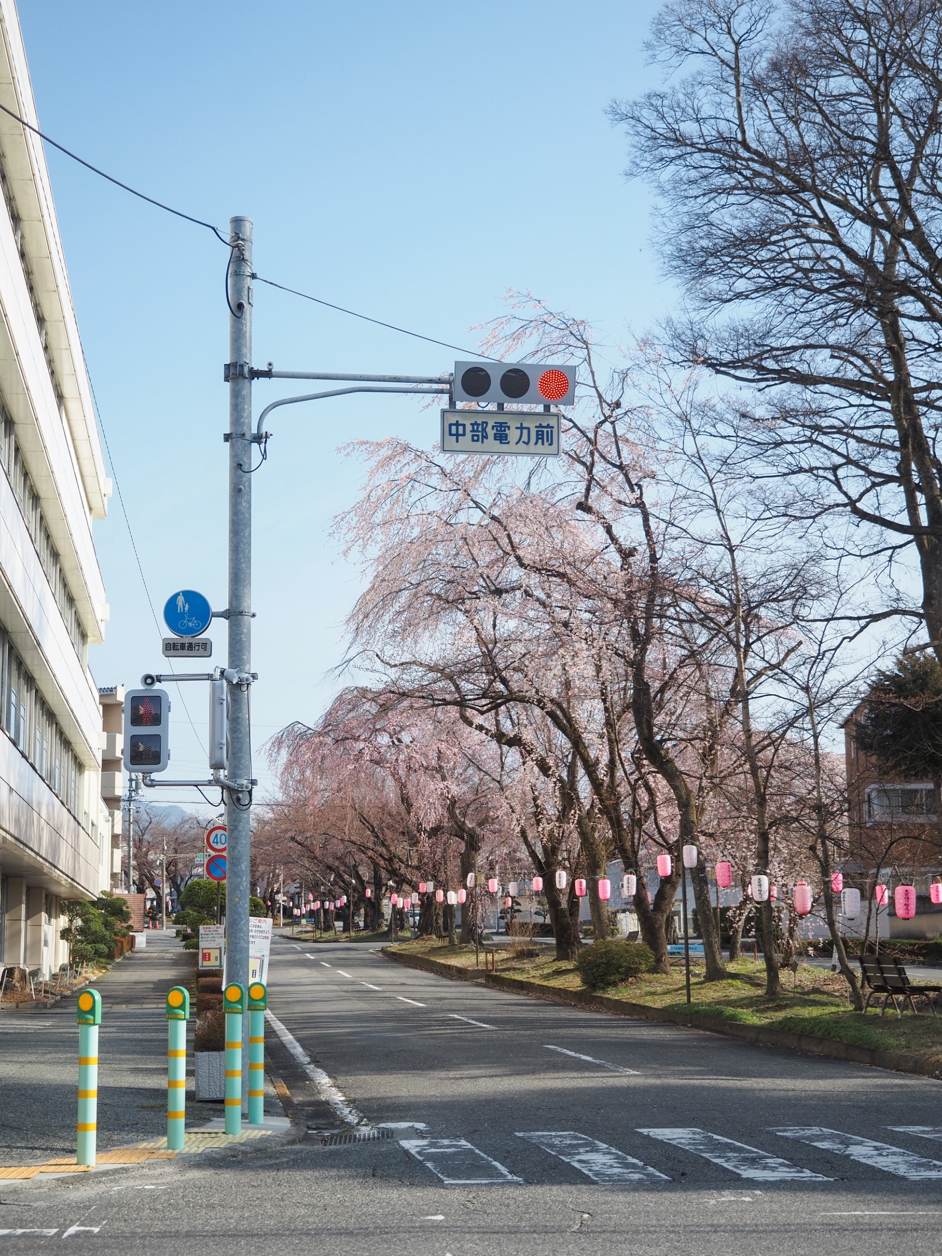 飯田は枝垂れ桜の多いまちで、街路樹も枝垂れ桜だったりします。