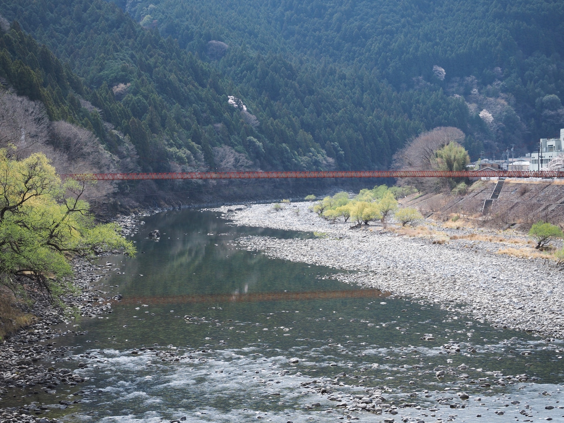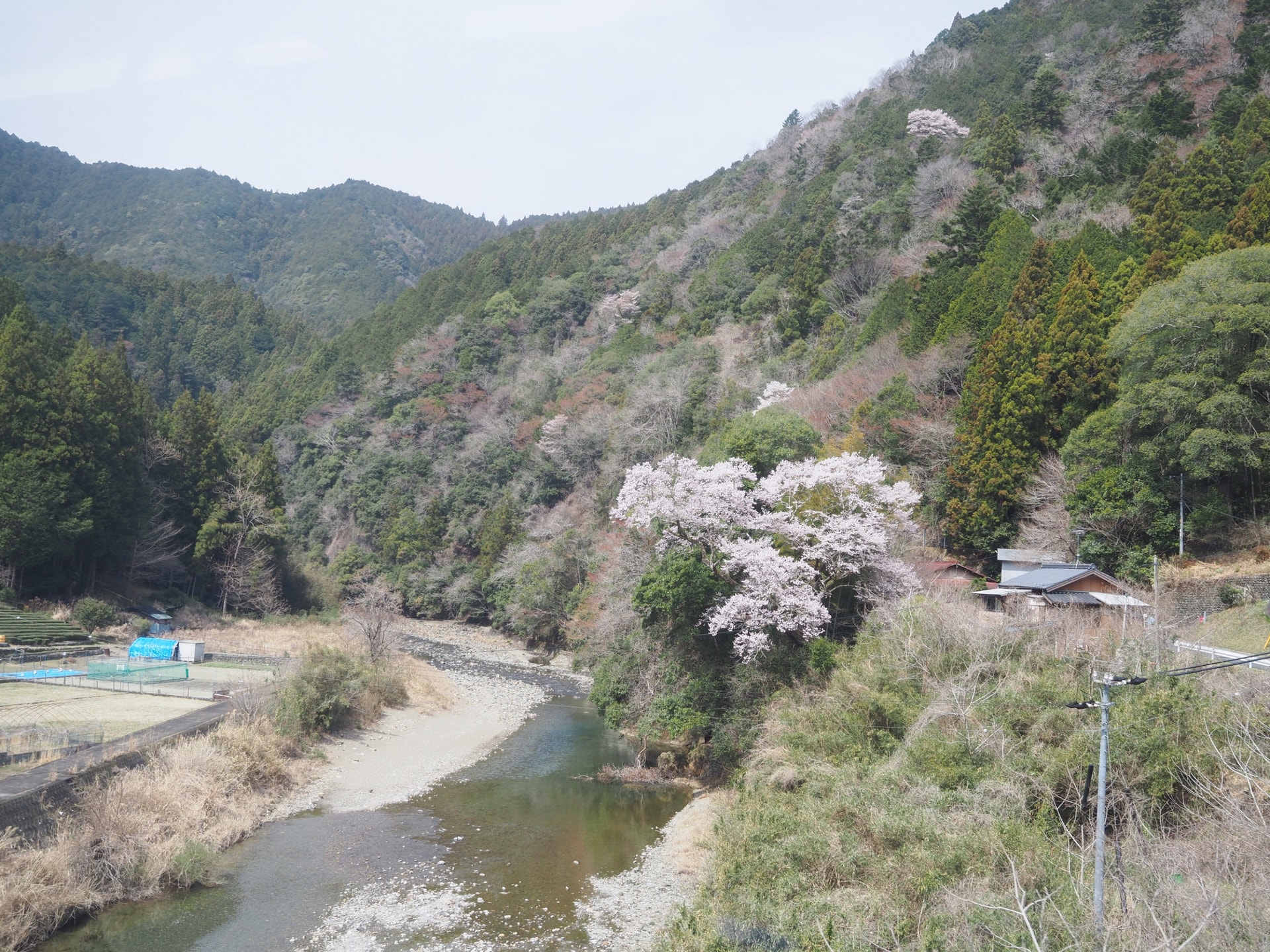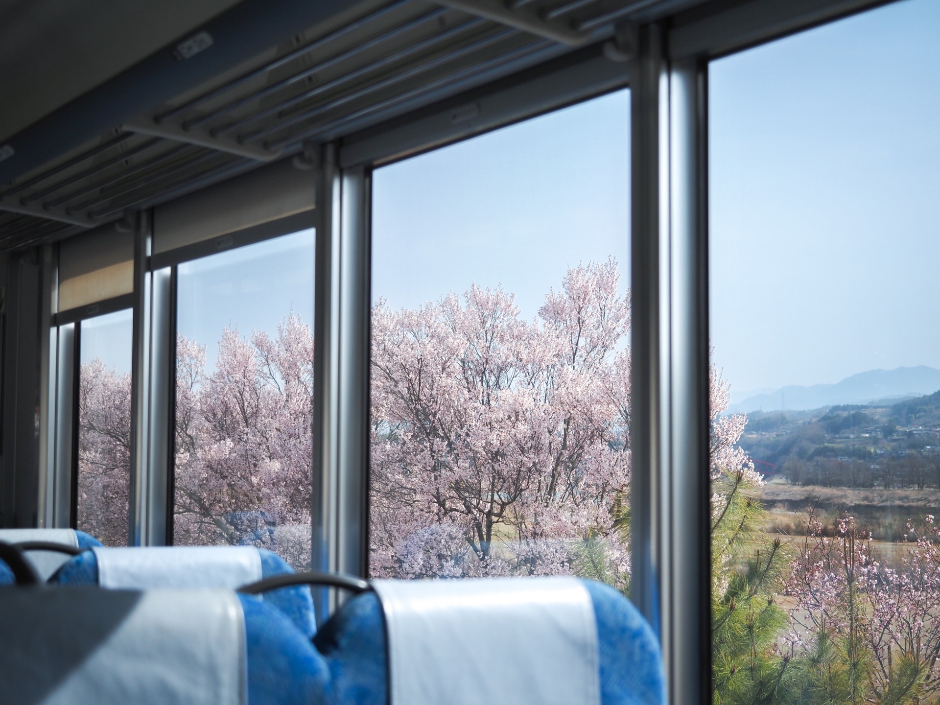 トンネル区間以外は天竜川も見えて、さらには桜も咲いていて。