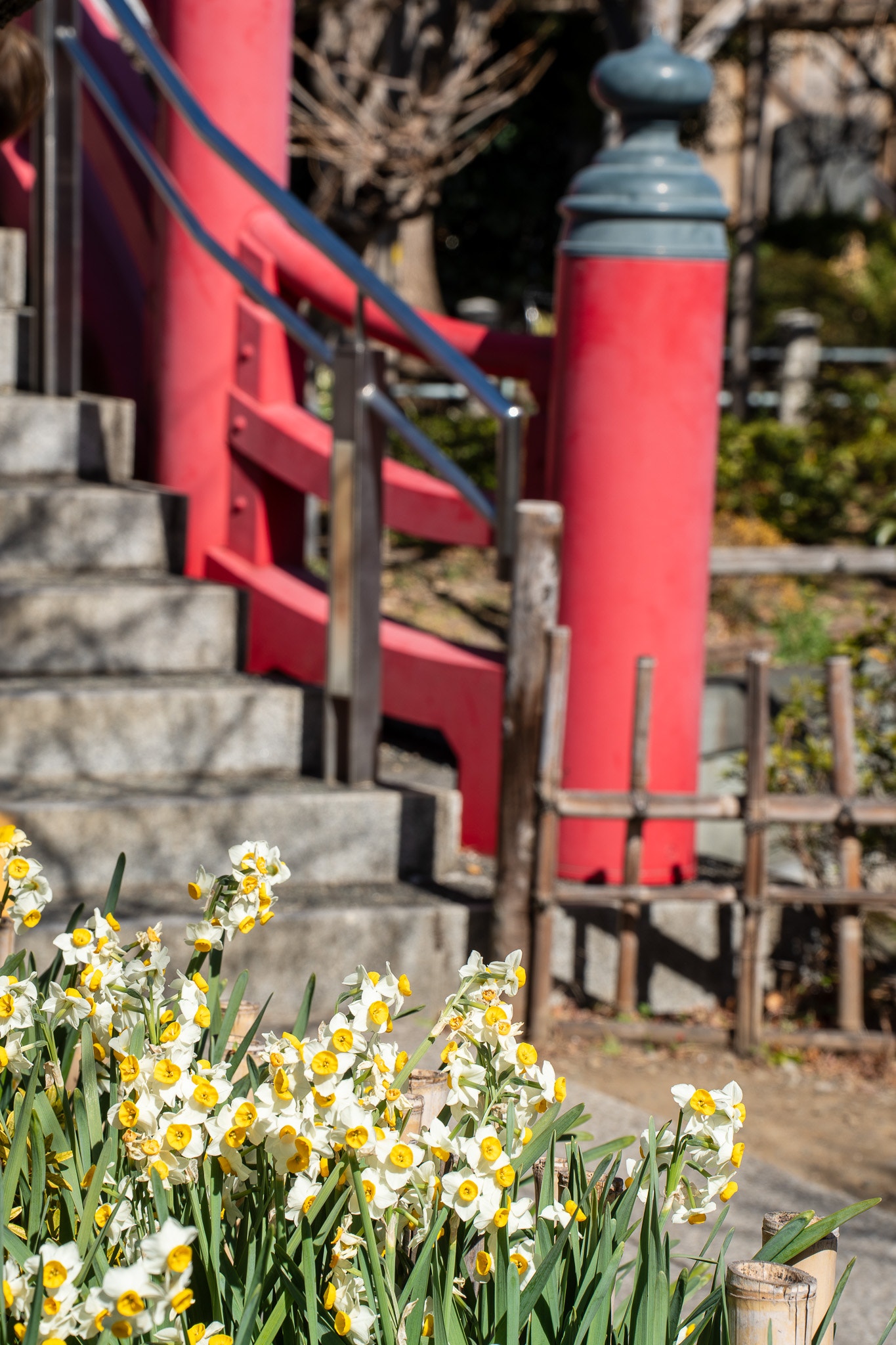 赤い太鼓橋がいい感じなのだけど、金属の手すりが何とも残念😭もう少し情緒のある手すりにできなかったのだろうか???
