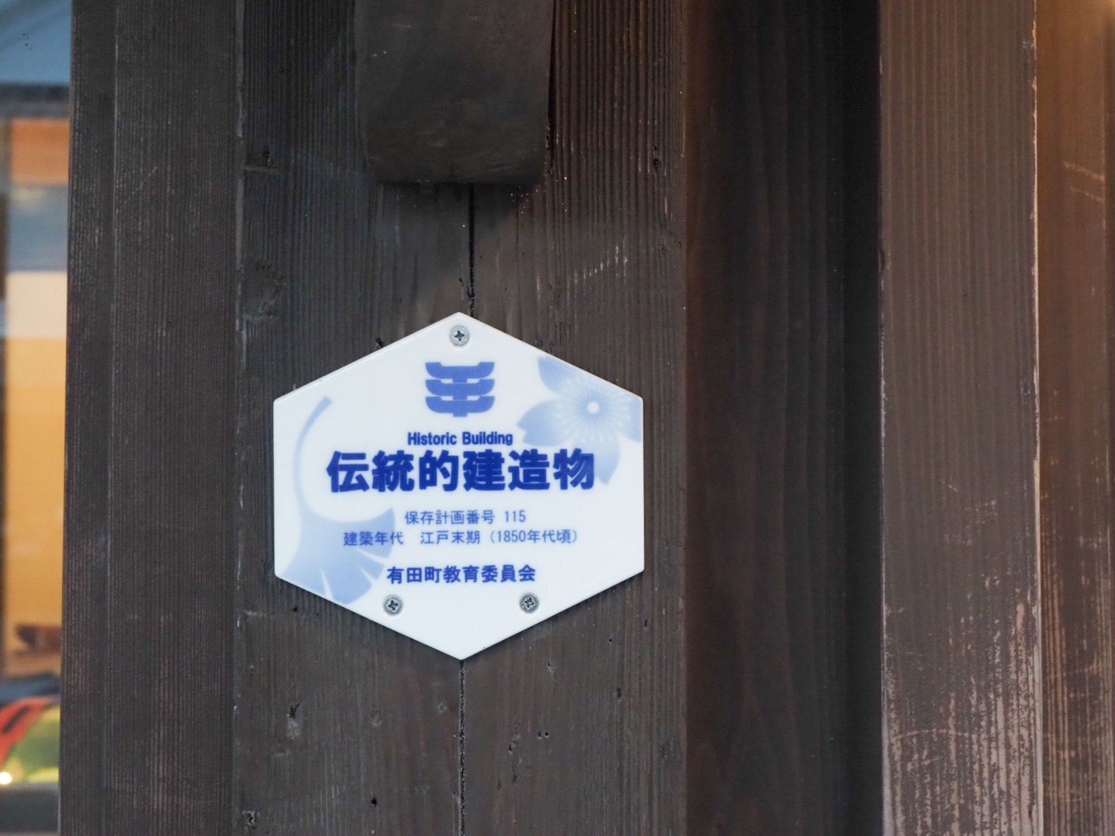 「伝統的建造物」を示す銘板も有田焼製です。