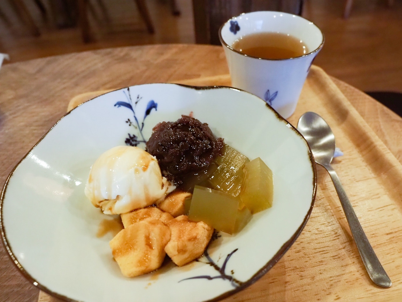 クリームあんみつの左下の方にあるのは、「ごどうふ」というにがりの代わりに葛やでんぷんを混ぜて作られる有田の郷土料理。ふつうの豆腐よりは少し固め?な不思議な食感でしたがきなこにもよく合っておいしかったです。