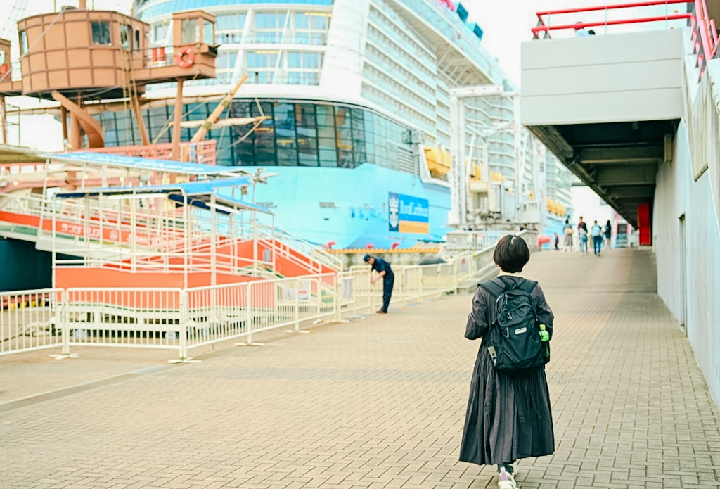 大きな豪華客船が港に寄港していて、どこまでいくんだろうか。