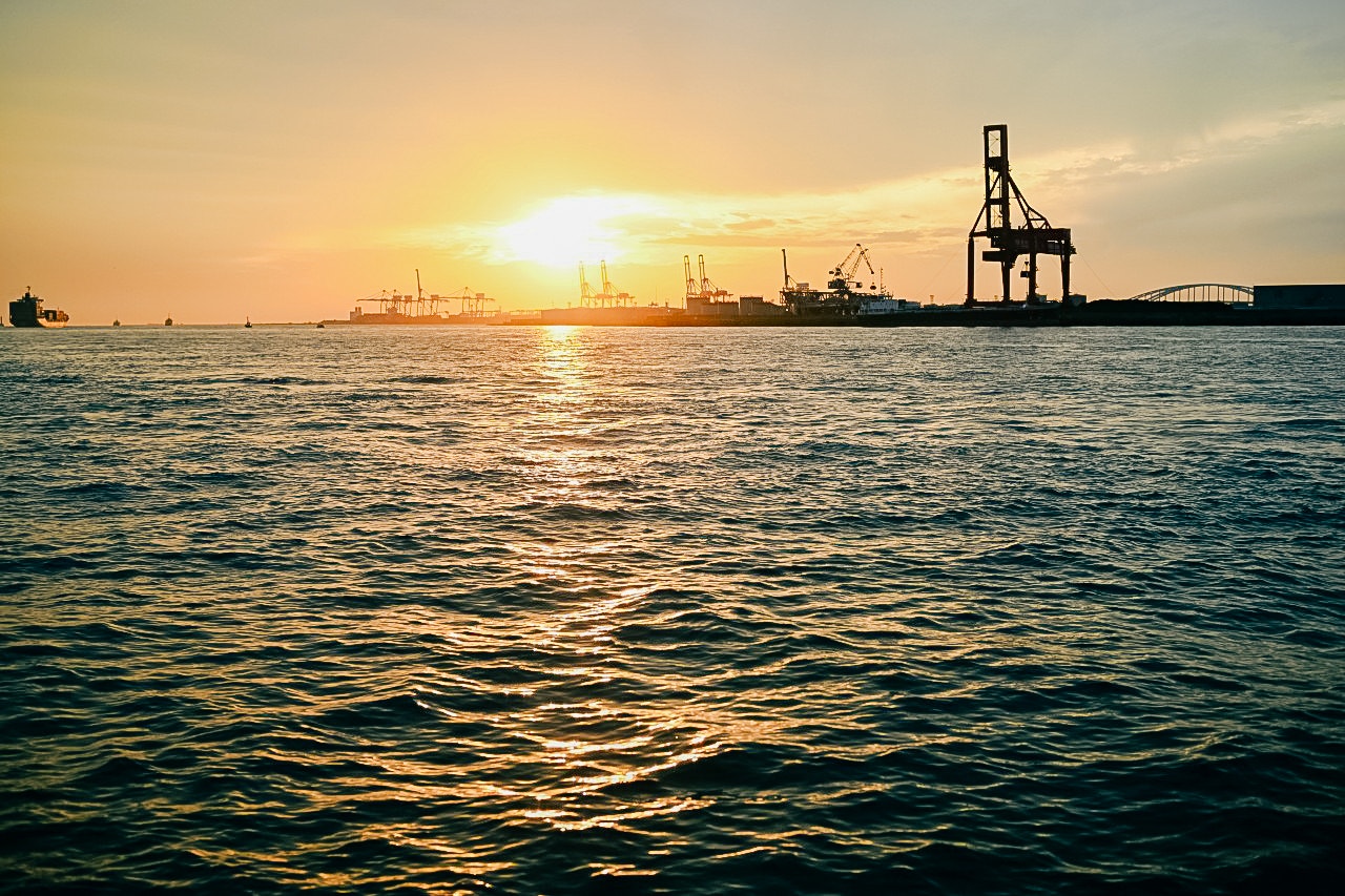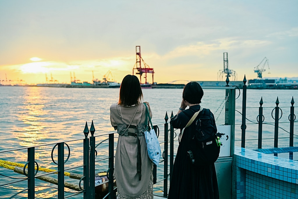 ベイエリアと呼ばれる地区は、大阪湾に面したエリアで美しい夕陽にも出会えるスポット。