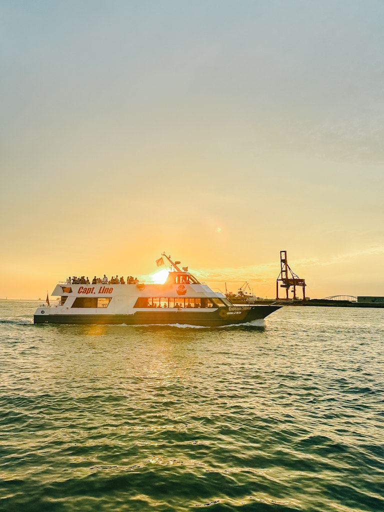 1時間毎出港(季節により始発便及び最終便の変動あり)絶対見れないと思っていた分厚い曇り空から、急に奇跡的な夕焼けが。