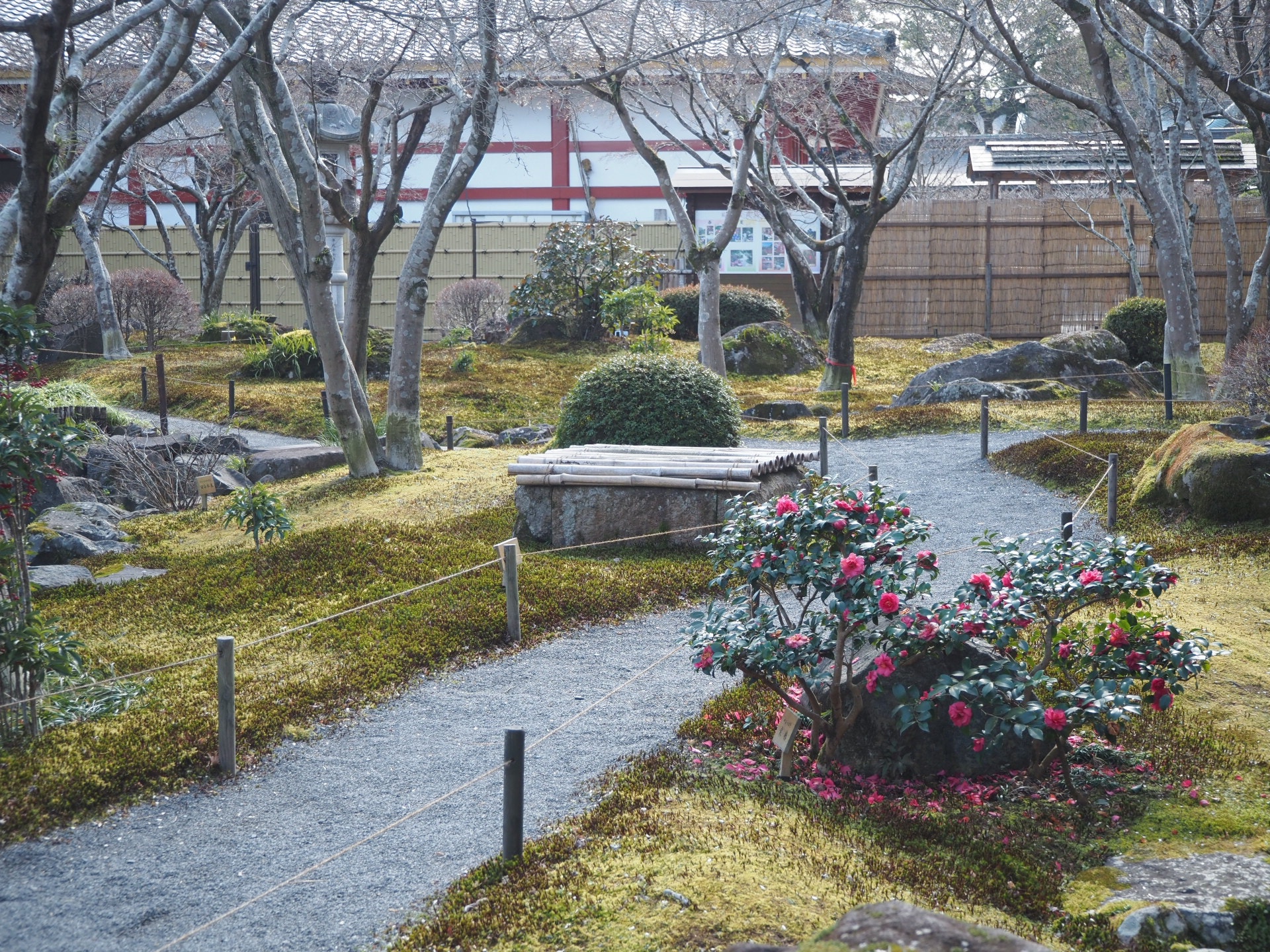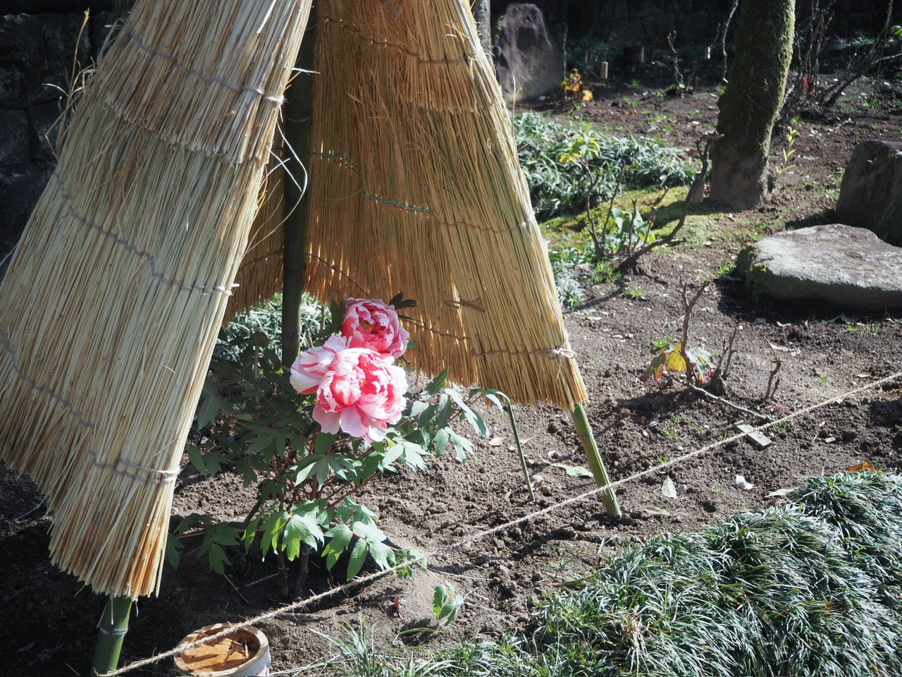 四季折々の花も有名で、1月は境内にある日本庭園に冬牡丹が咲いていました。
