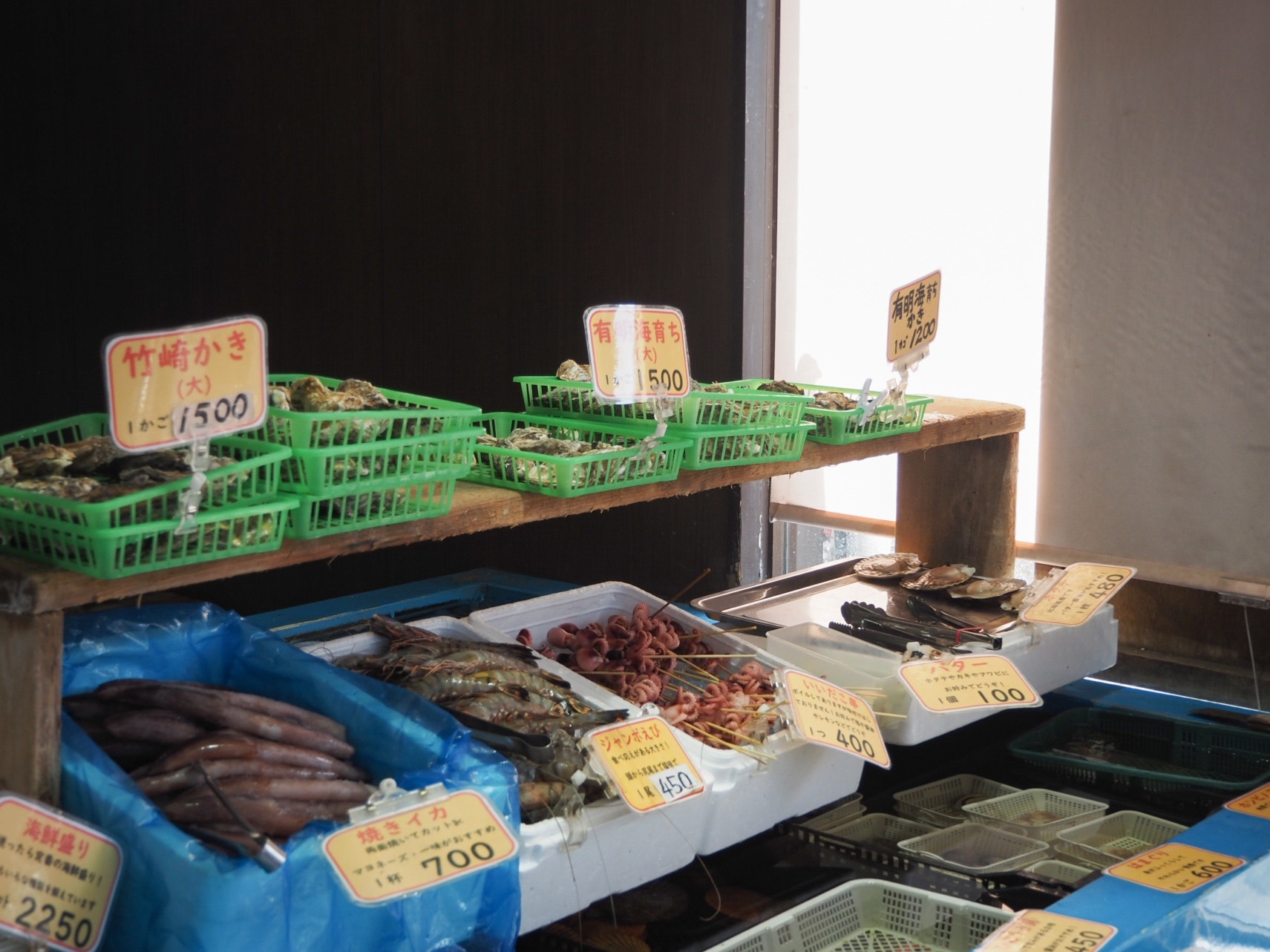 席に向かう前に貝類を注文し、サイドメニューも選んでおきます。