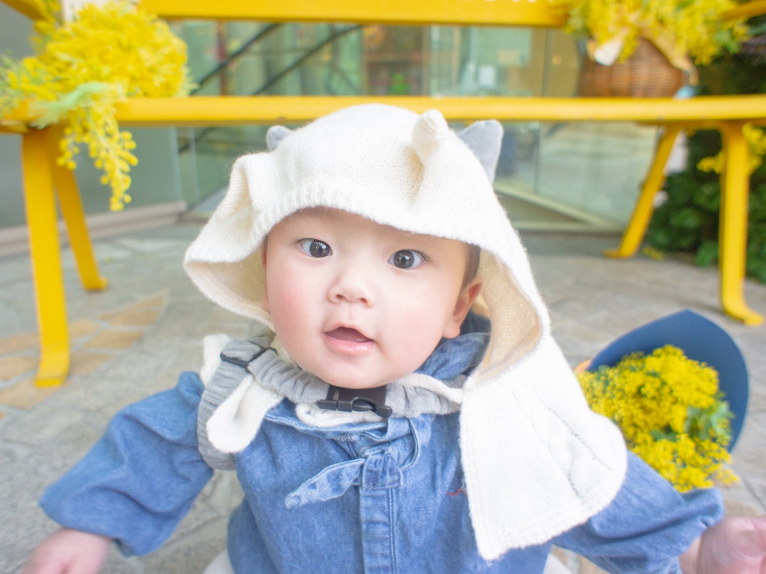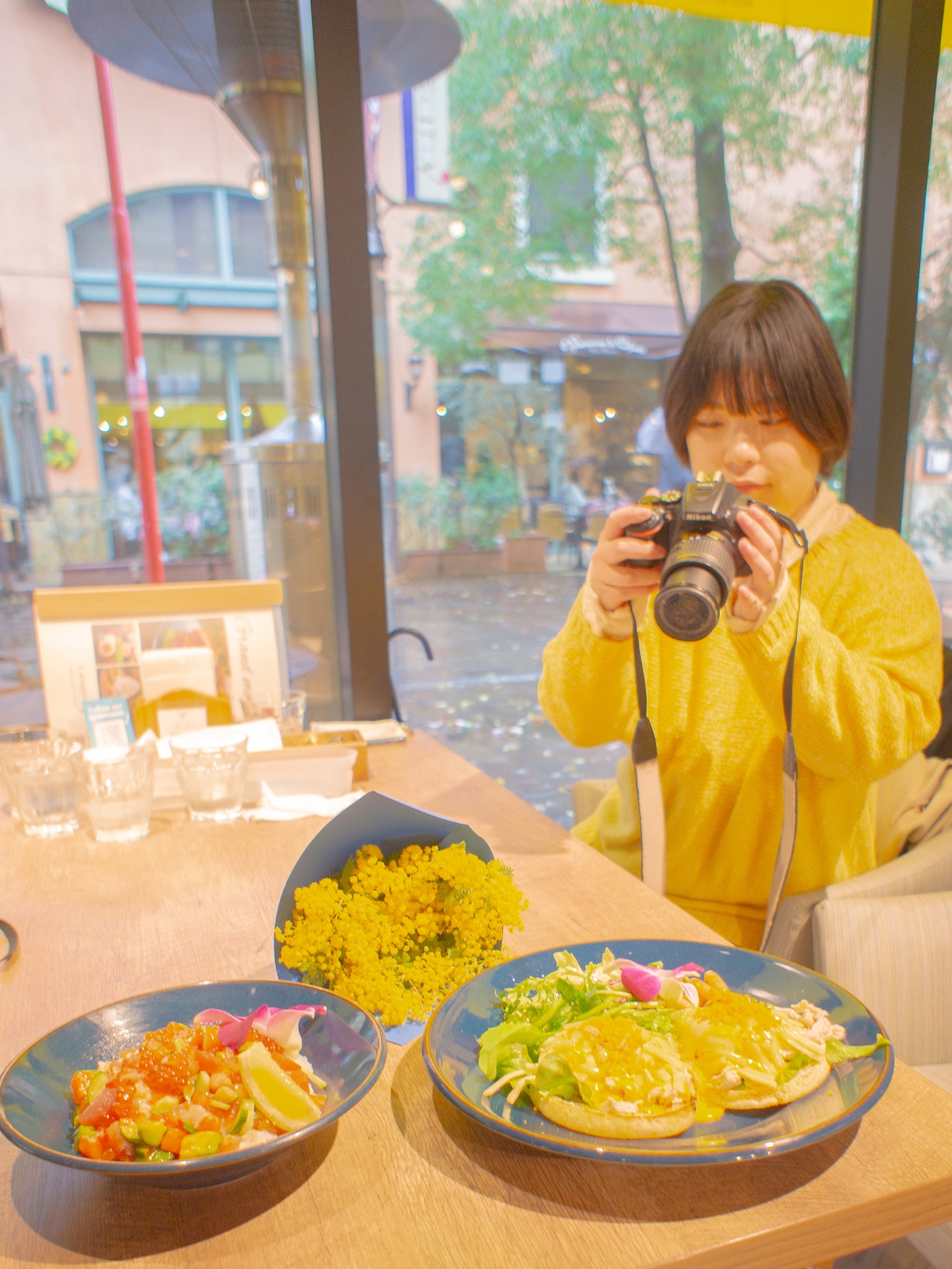 そして事前にミモザのブーケをお花屋さんでゲットできたので持っていきました💐
