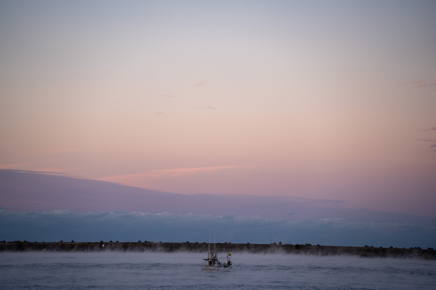 「気嵐」でしょうか?海から湯気が立っていました。とても神秘的な瞬間でした。