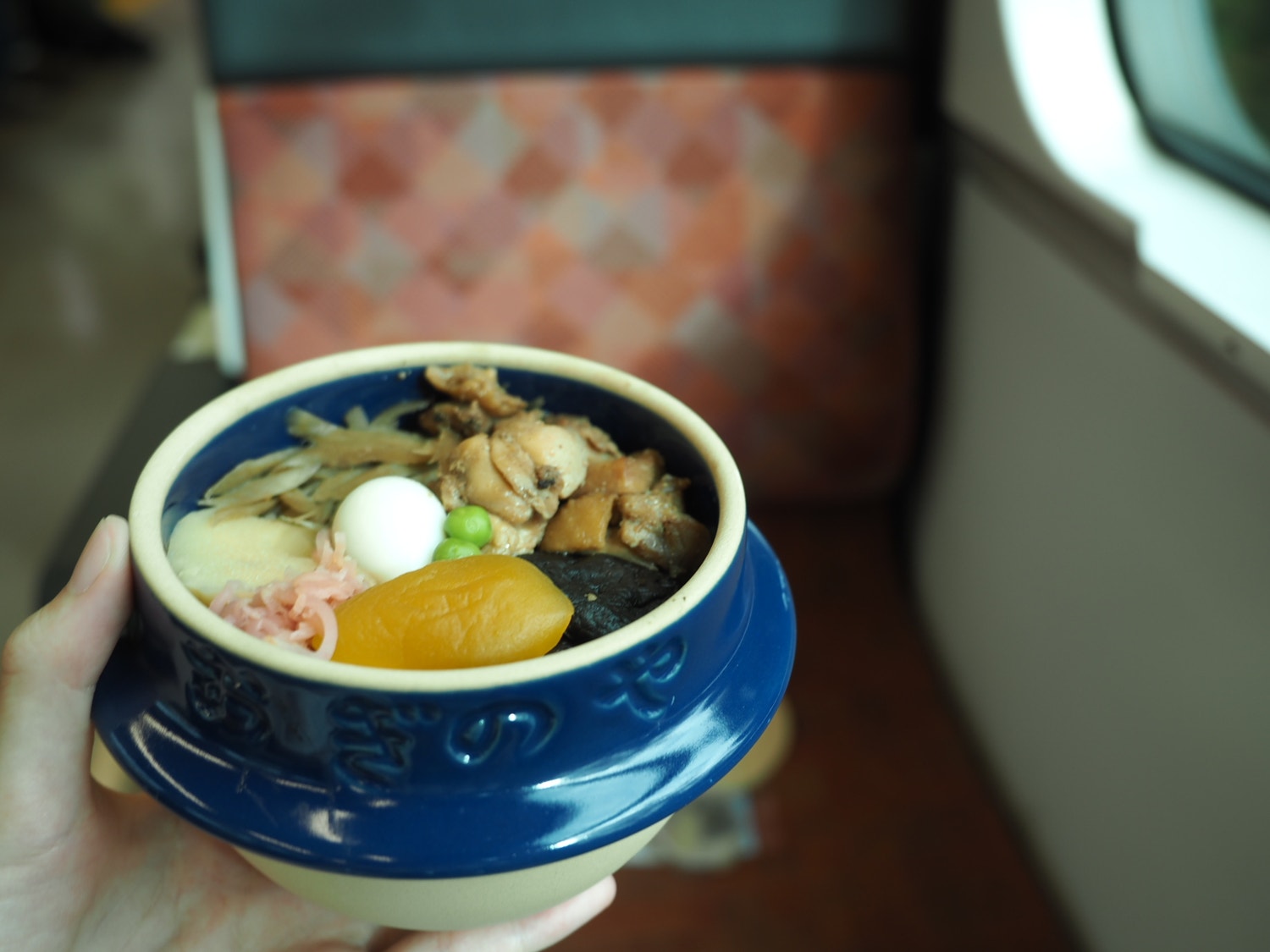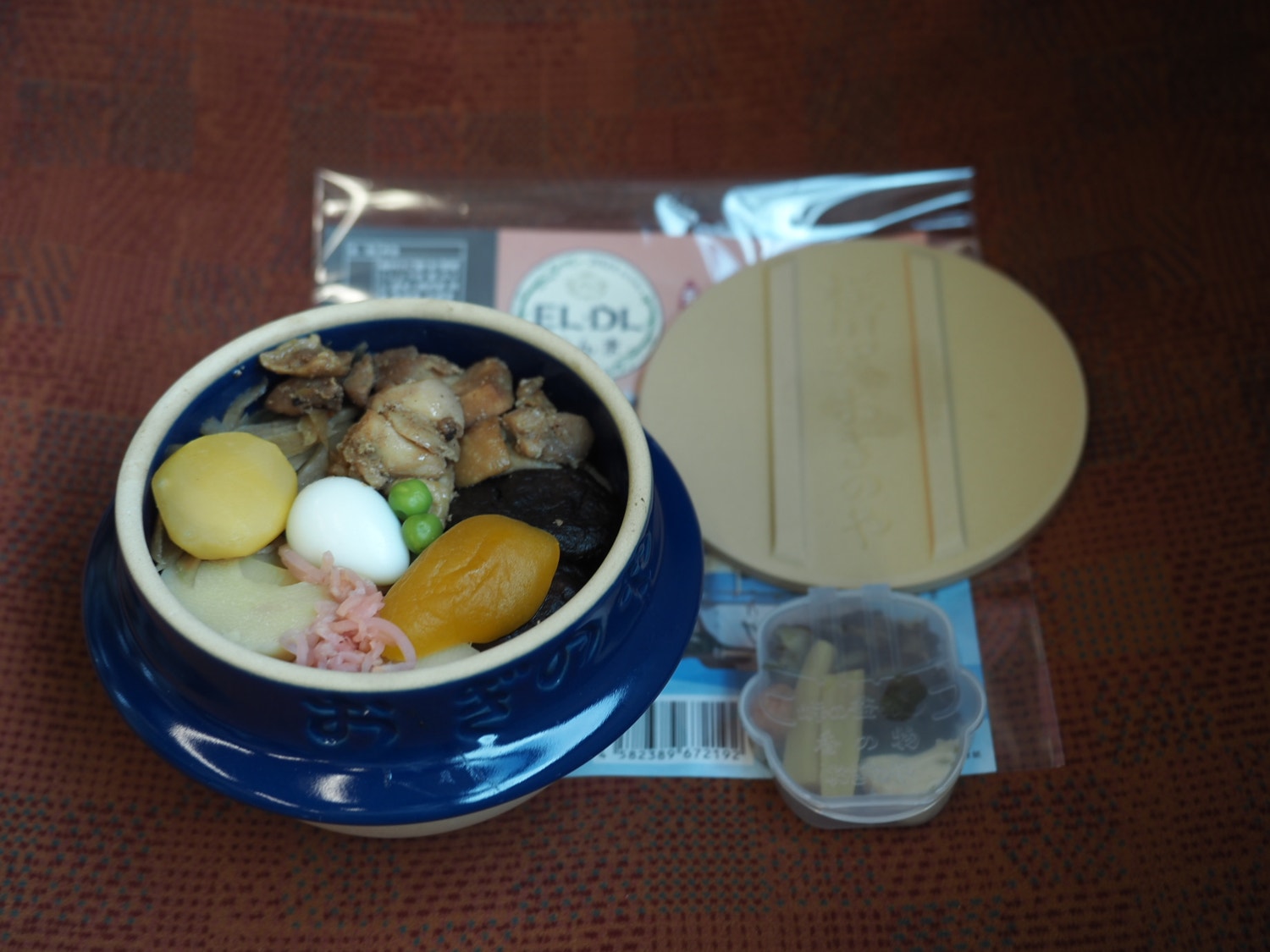 峠の釜めしといえば茶色いお釜らしいのですが、青いお釜なのは限定品だから。