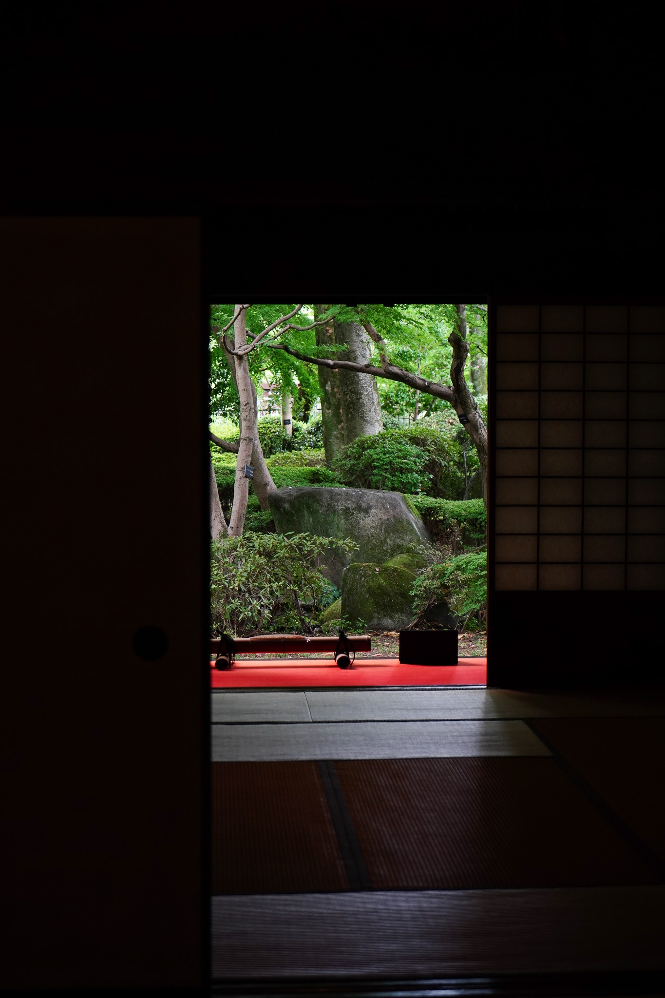 🪑 和風家屋の奥に見える額縁の中の絵のような緑