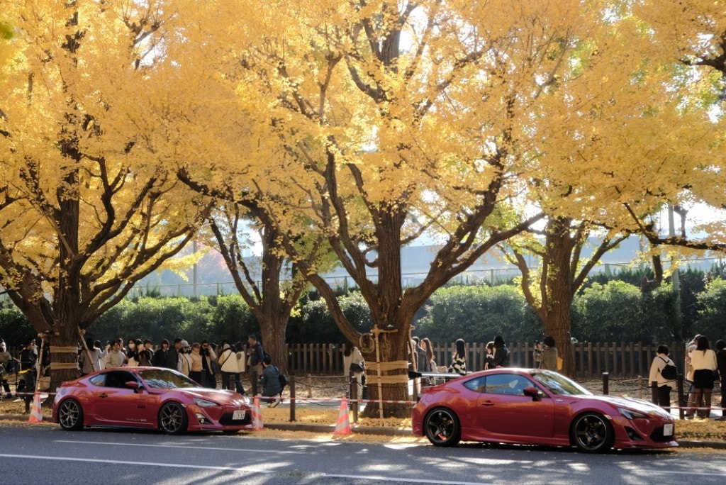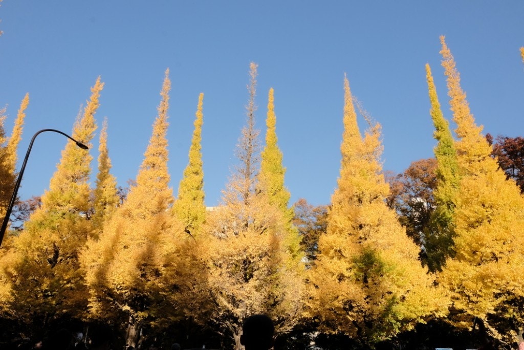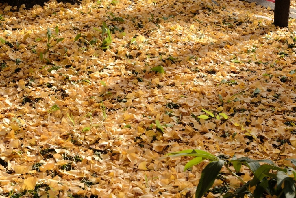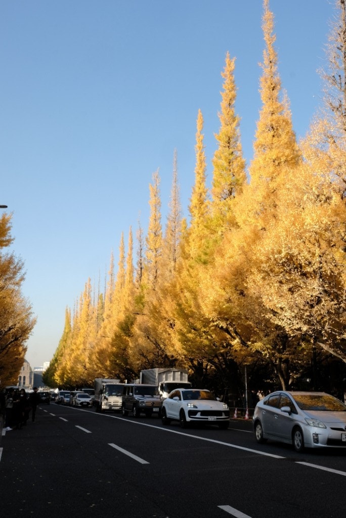 と、その前に、集まれるメンバーで、ちょうど身頃をむかえた外苑前のイチョウ並木にお立寄り!