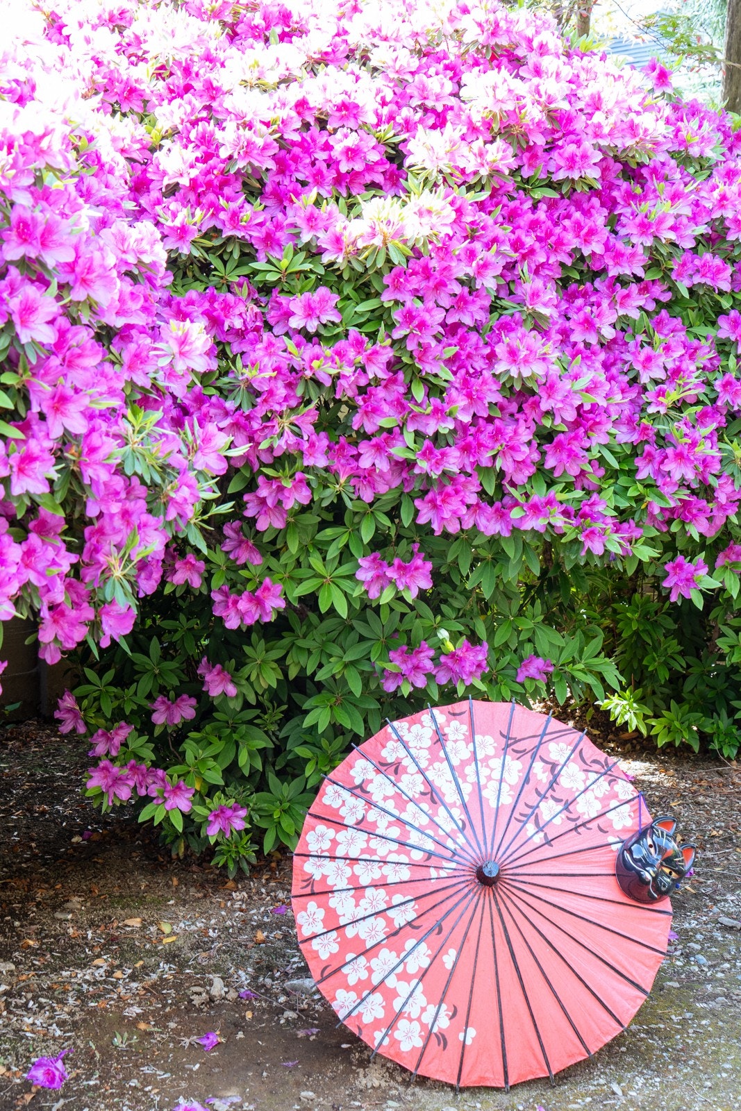 まずは、和傘ときつのお面に惹かれて、インドカレー店の隣の「延命院 」へ。