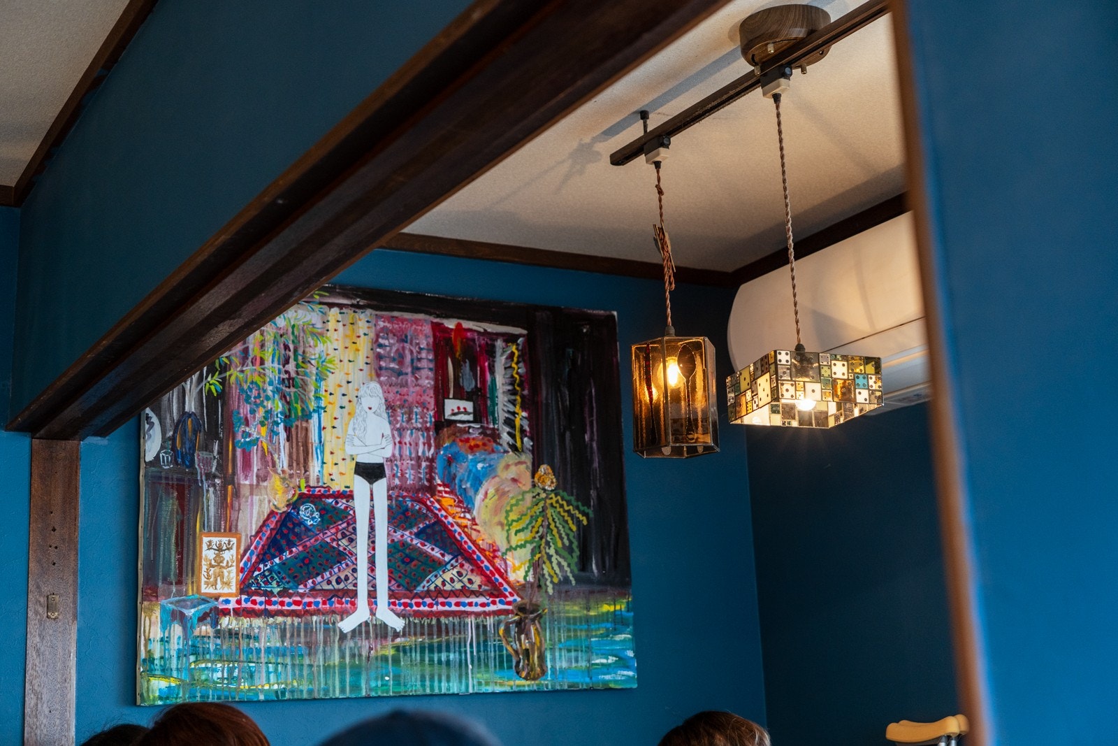 ネモフィラに続き青の世界観のレトロ喫茶。昭和の音楽がかかっていました。
