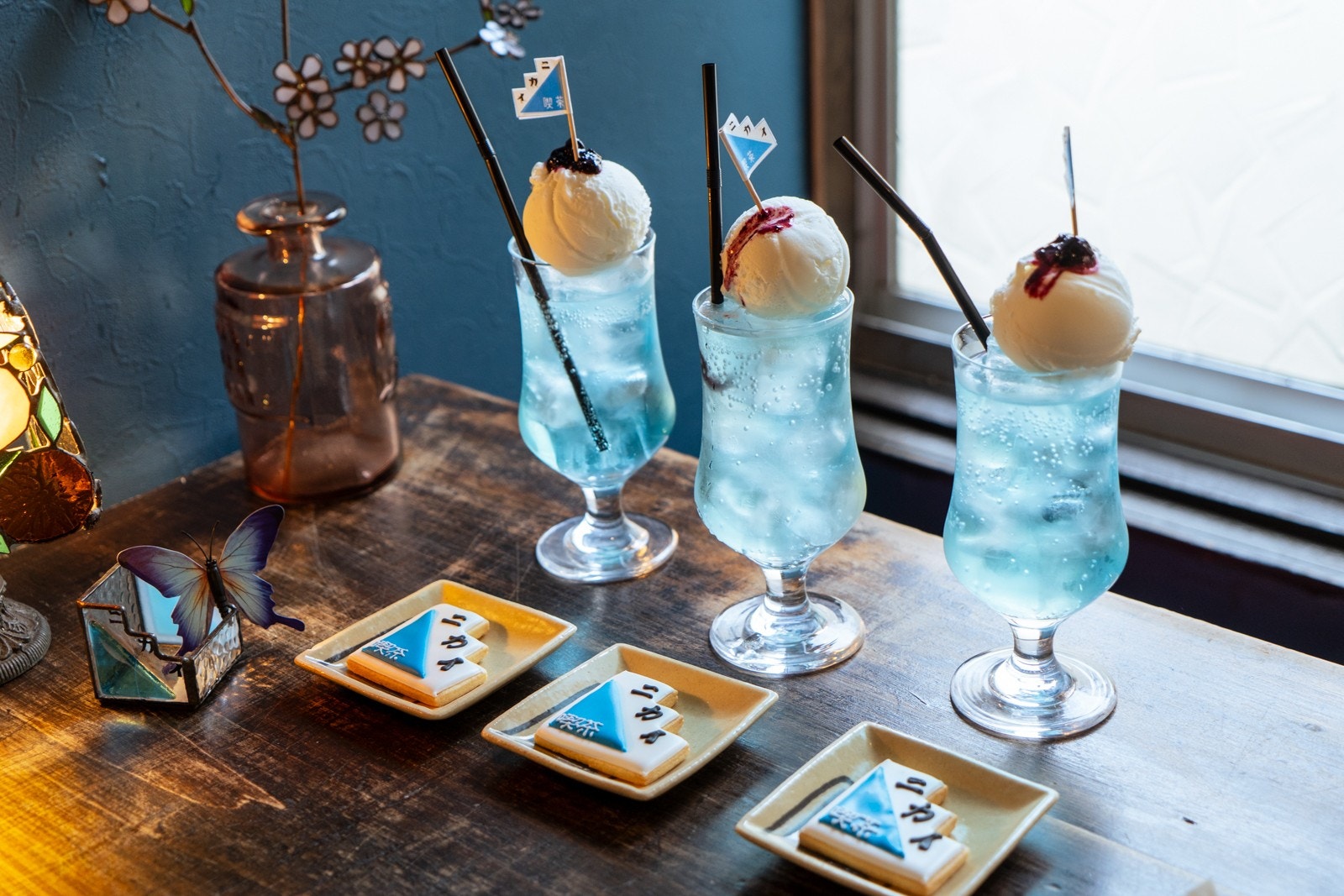 名物の透明感のあるクリームソーダ。さりげなくcamellhouseの蝶もいるよ~