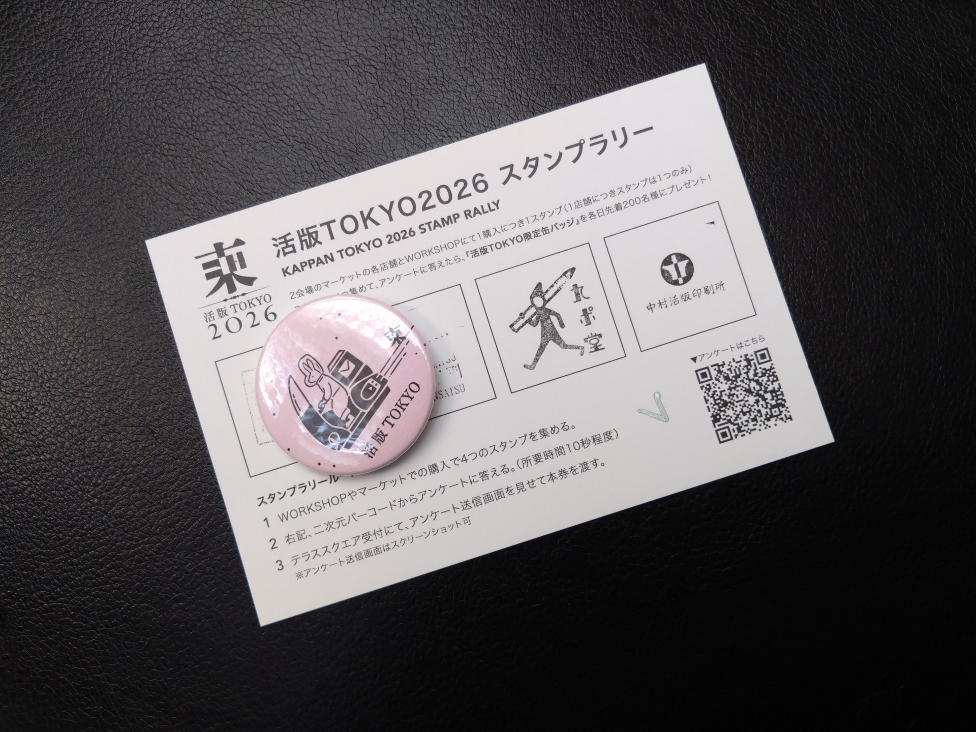期間中スタンプラリーが開催されていて、ワークショップに参加したり、お買い物をするとスタンプがもらえるので、それを4店舗分集めて、アンケートに答えると、先着200人に缶バッチがもらえます!