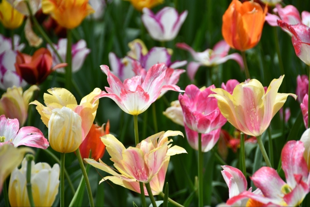沢山な品種のチューリップが並んでいて、とても珍しい見たことないカタチのチューリップまで!