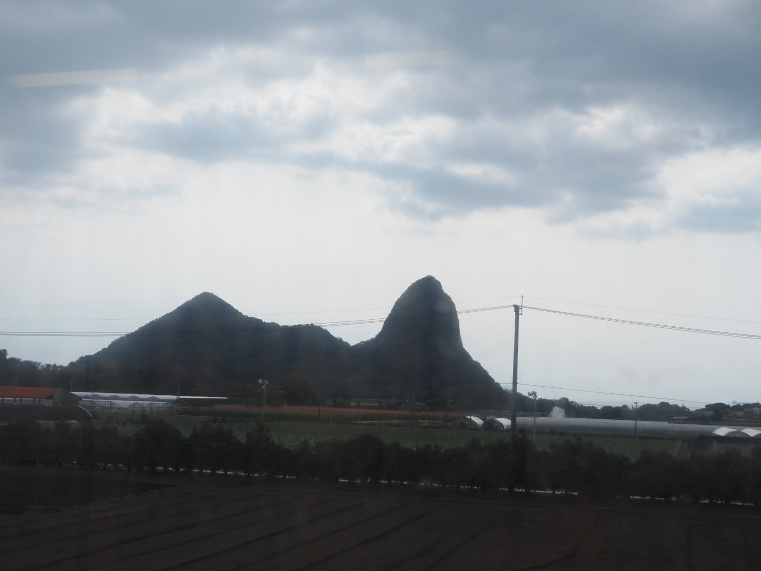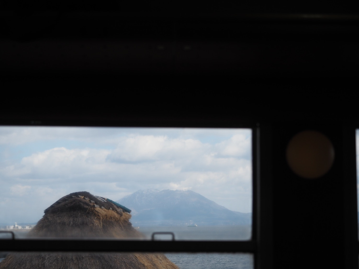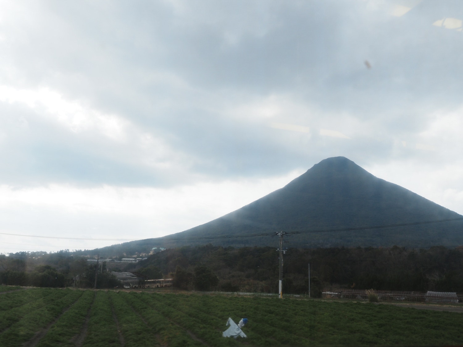 前半の鹿児島中央〜指宿間では、海と桜島を楽しめ、指宿を越えるときれいな形の山が。