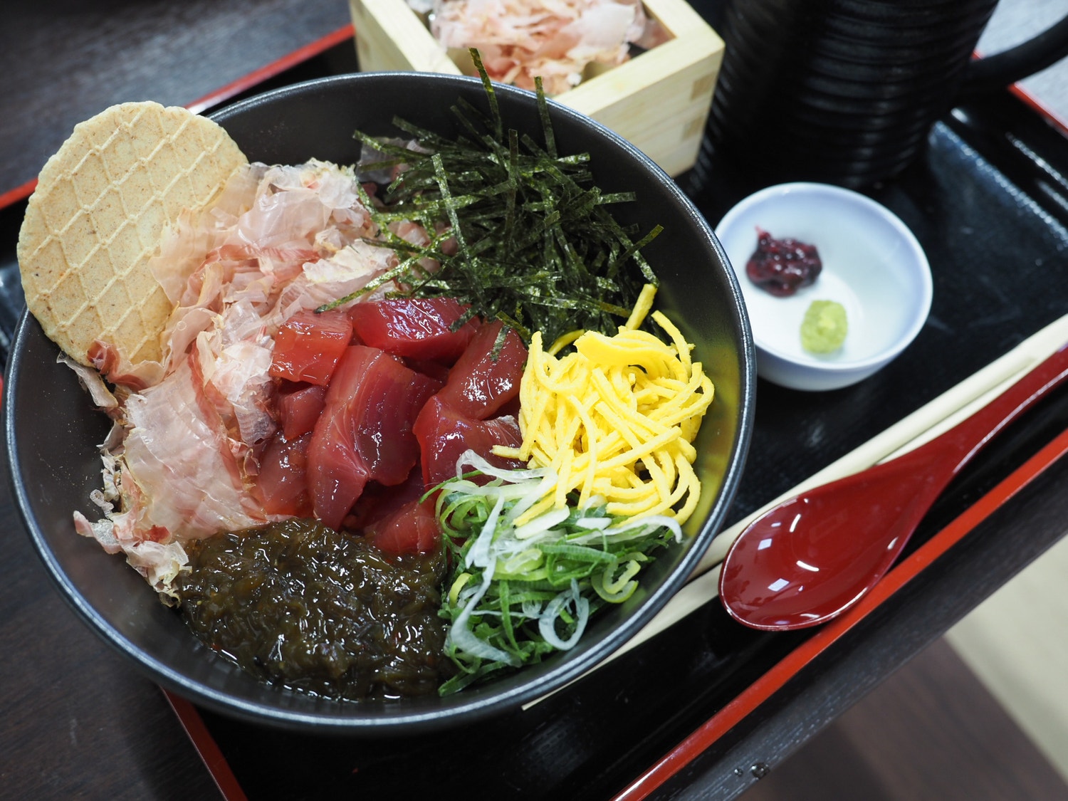 舟人丼という、鰹節と出汁をかけて食べるどんぶり。