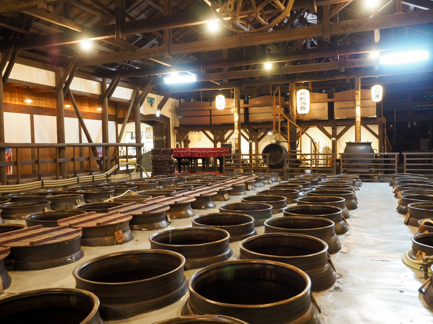 お酒を作っている日はその様子を見ることもできるんだとか。作っていない日も、酒樽を見るだけで圧倒されます。