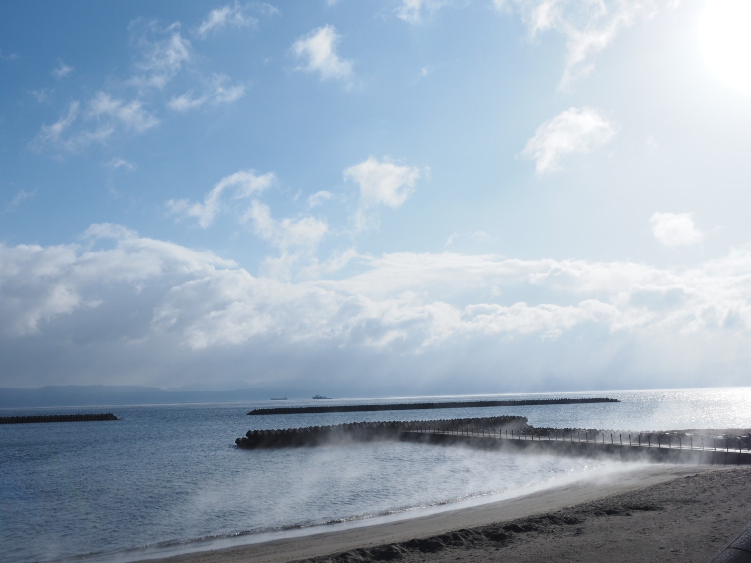砂むし風呂と温泉の後にはアイスキャンディーを。かじりながら海沿いを歩いて荷物を預けていたホテルに戻りました。なんか青春だなあ。