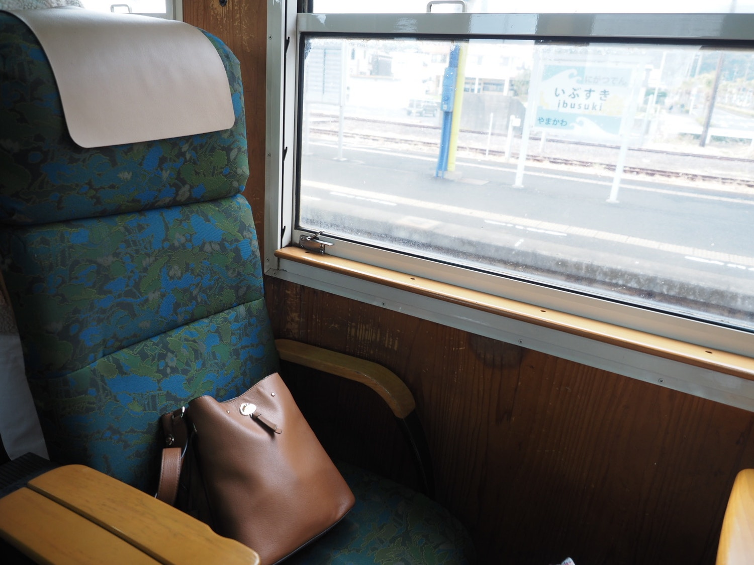 竜宮城伝説の発祥の地と言われる指宿と鹿児島中央駅を50分程度で結ぶ、なかなか予約の取れない特急。もちろんこの日も満席でした。