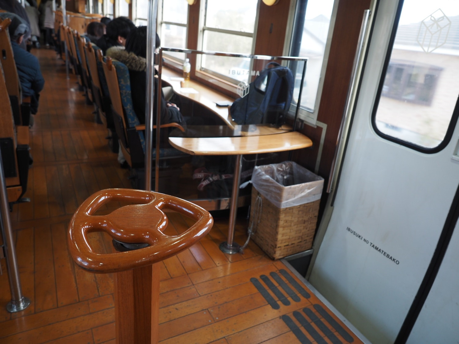指宿から鹿児島中央駅へ観光特急「指宿のたまて箱」で戻ります。