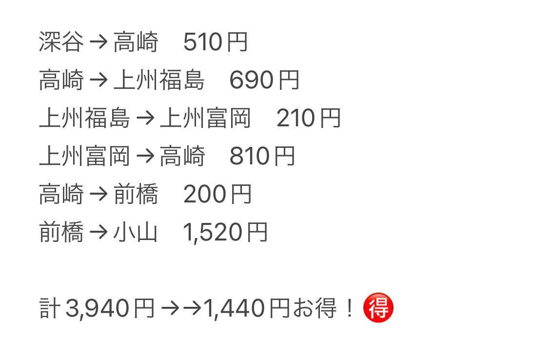 途中下車をしまくるか、群馬観光の後にあしかがフラワーパークや栃木市方面へ抜けるか、をするなら元は取れるかな?と思います。私の使用額は最後に…