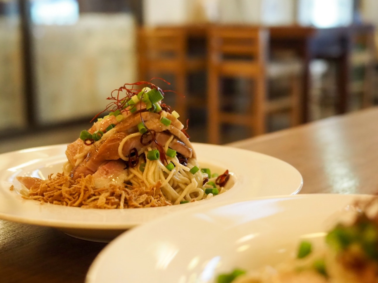 店員さんのおすすめでペペロンチーノ風の「ペペロンチー麺」に。盛り付けがパスタ風でおしゃれ。
