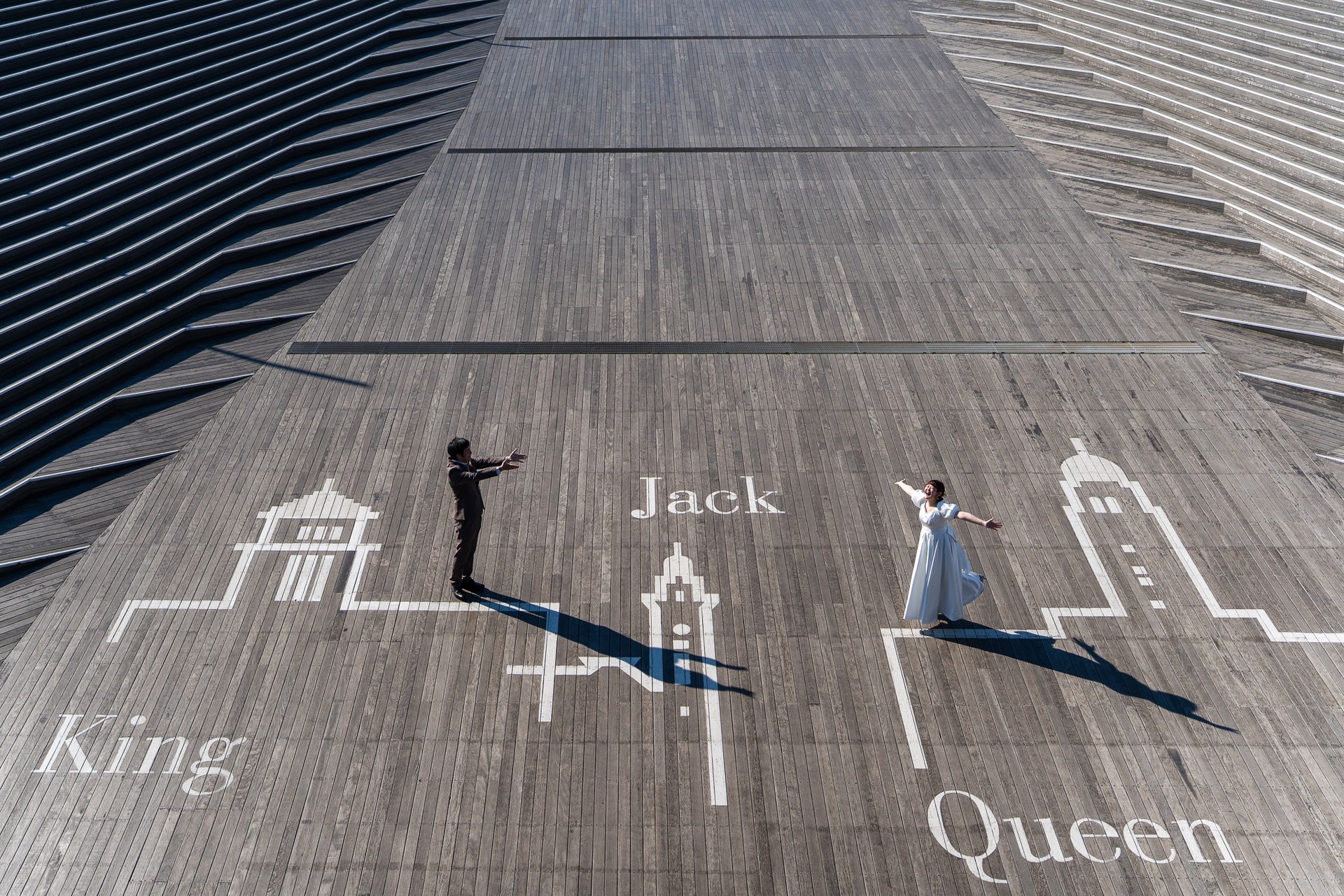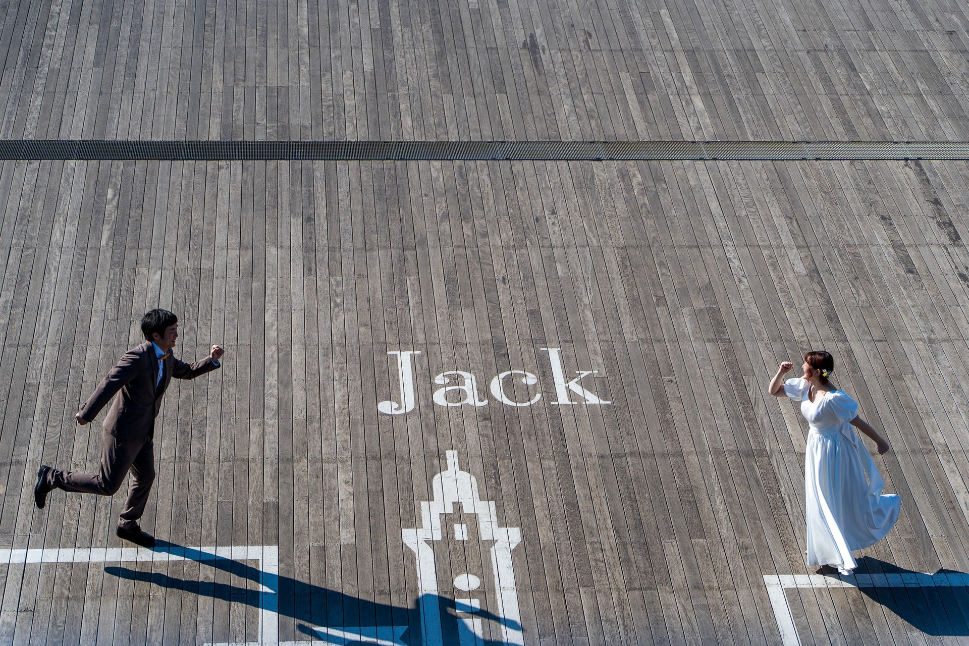 まずは、大さん橋のデッキ部分を上の階から撮影します。