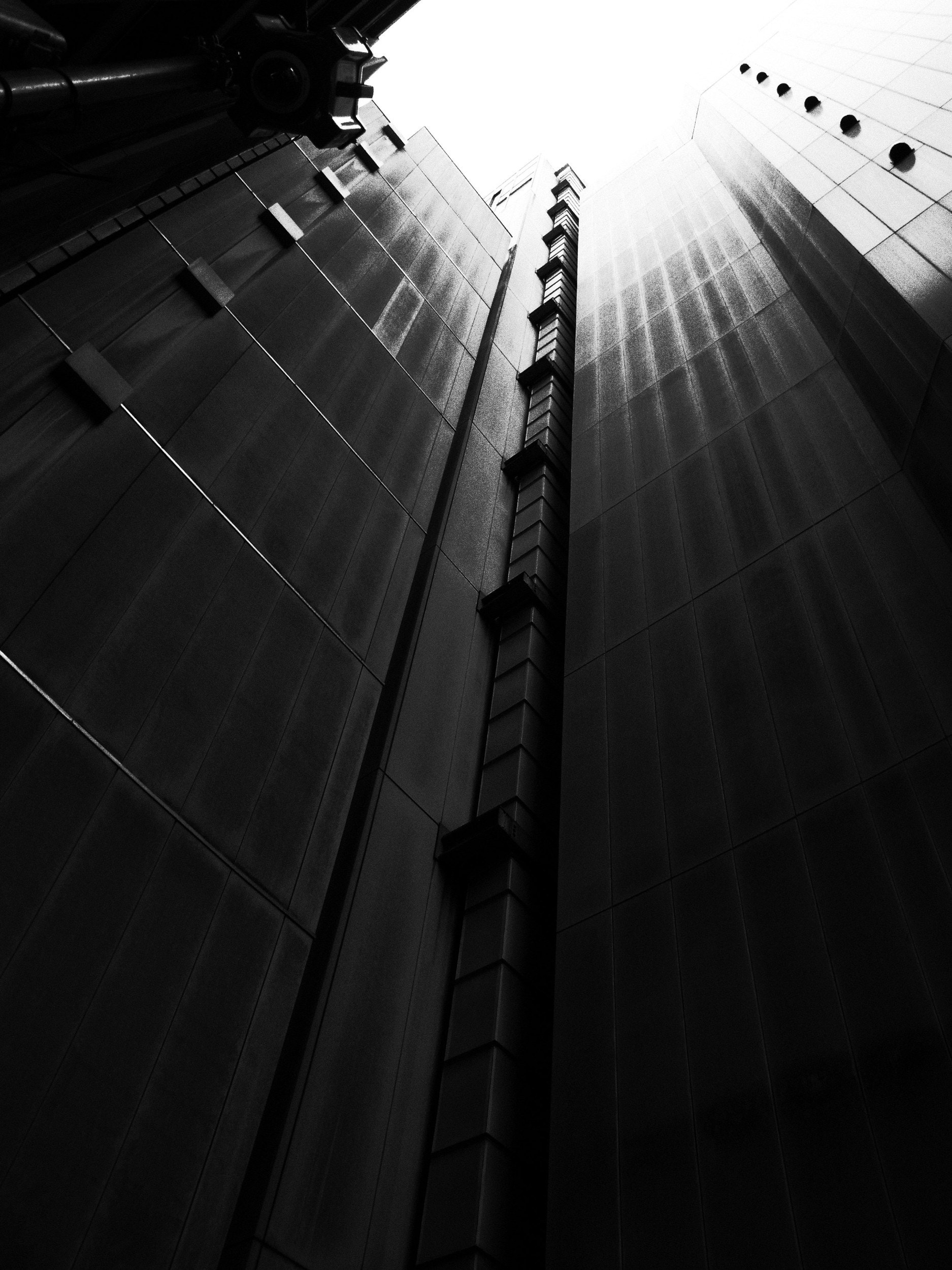 @イチ さんオススメの神社の参道は改装中でフェンスだらけだったが、見上げたらビルを取り壊した後の空がぽっかりと見えてこれはこれで良かった。
