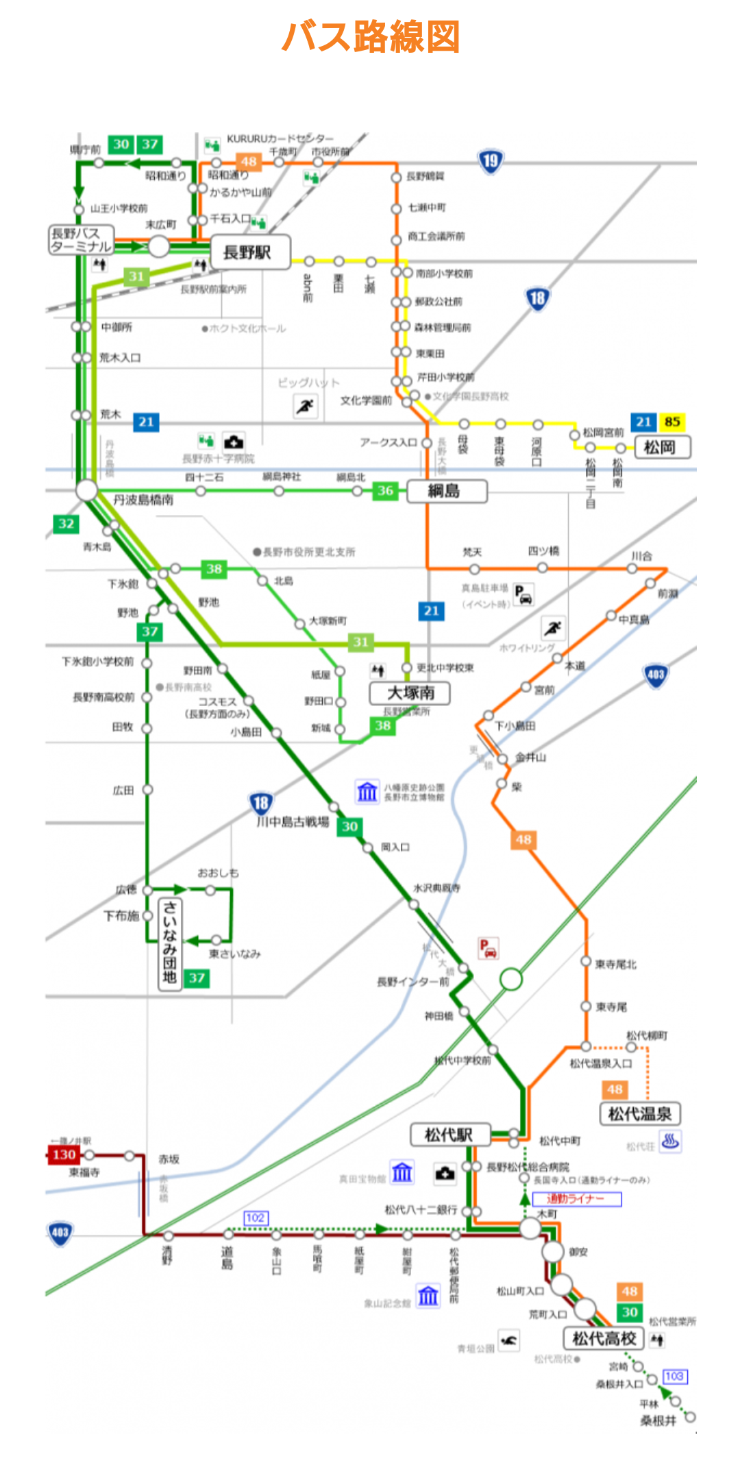 長野駅からアルピコ交通のバスで660円区間にあり、とても訪れやすい場所です。