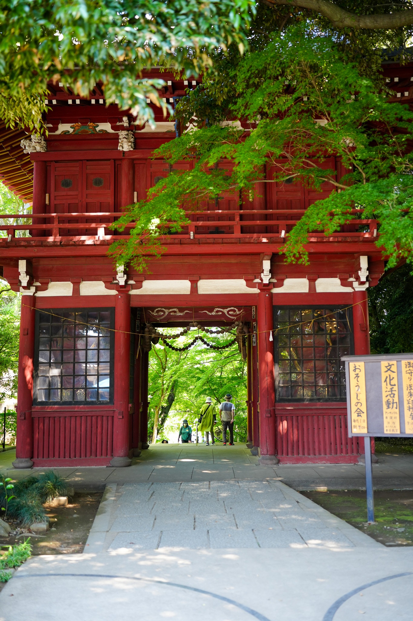 参道の正面に「長谷山」の扁額を掲げた朱塗りの高楼。
