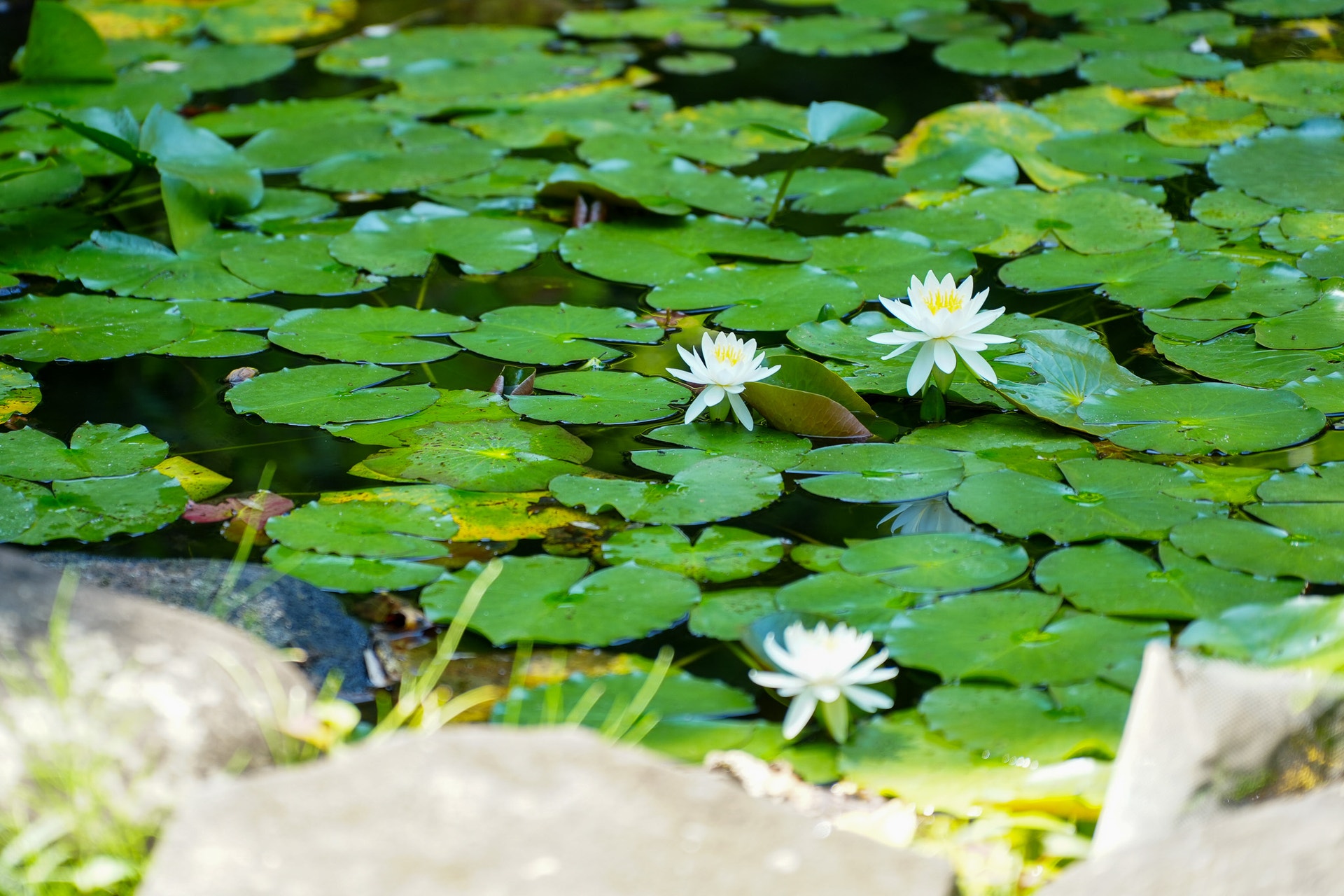 池にはスイレンの花。