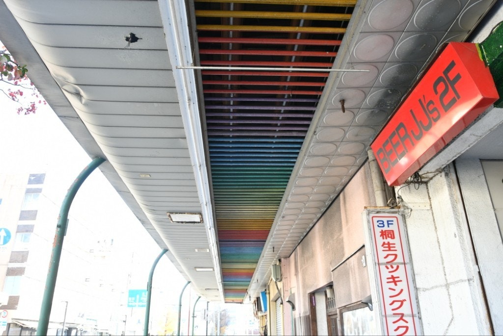 前日おさそいで、@miho さんが、レインボーのアーケードが好きとおっしゃっていた商店街を歩いて向かいました。