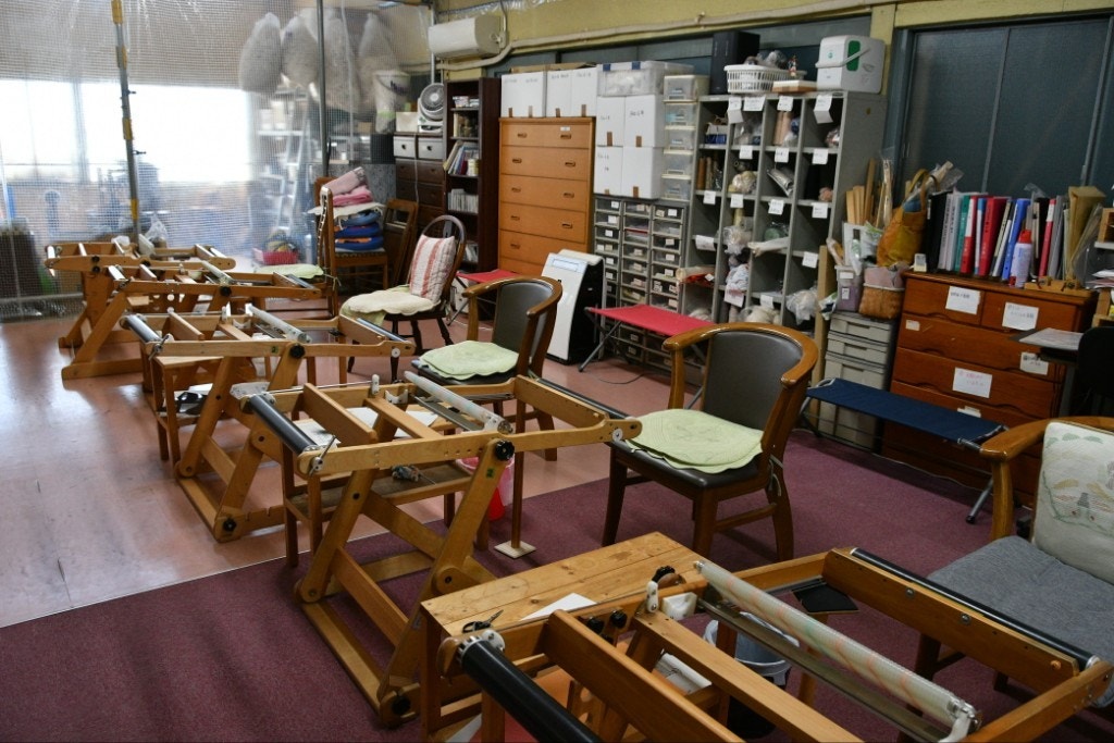 健常者だけでなく、足の不自由な方にも織物が出来るようにと考えられた、とても優しい織り機(*^^*)